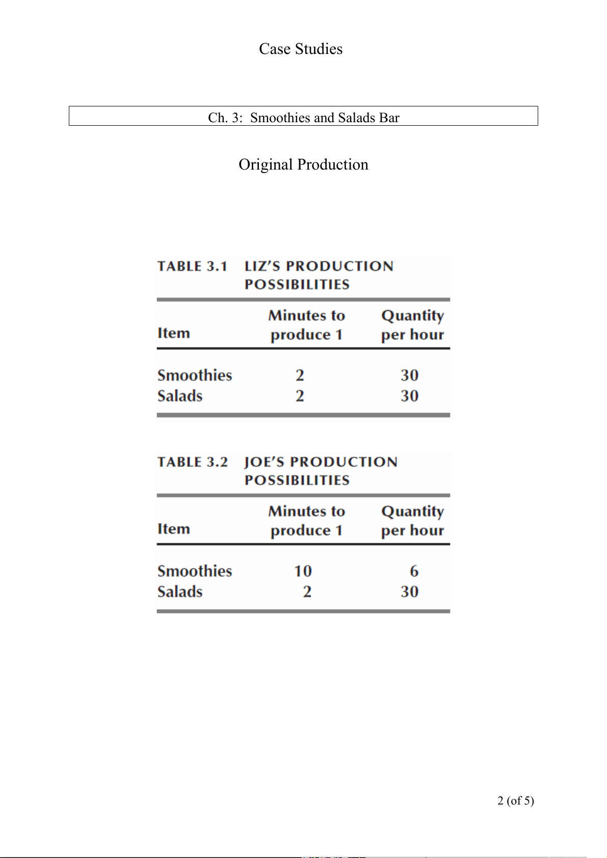Ch. 3: Smoothies and Salads Bar Original Production 2 (of 5) Case Studies