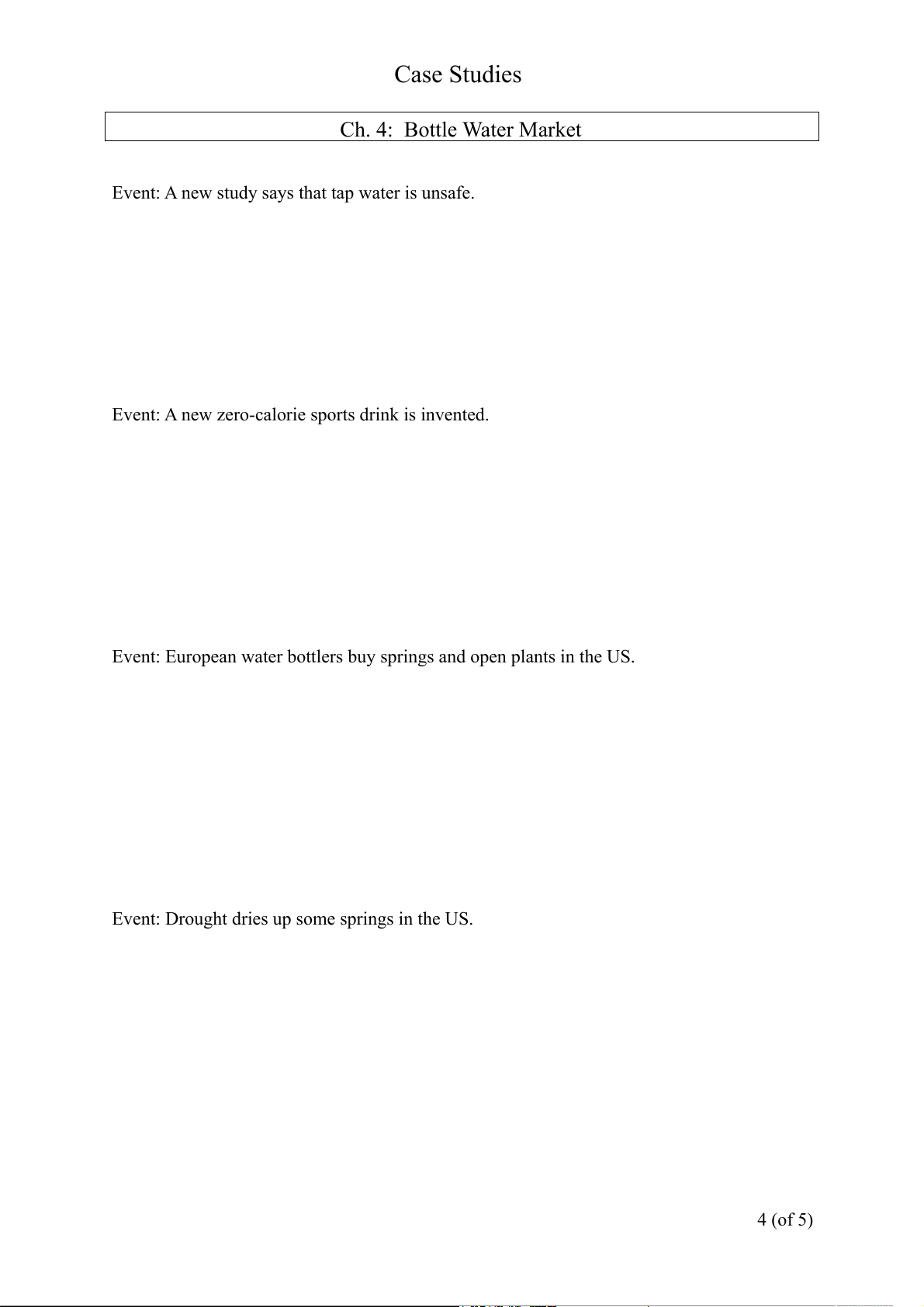 Ch. 3: Smoothies and Salads Bar (con’t) 3 (of 5) Case Studies Ch. 4: Bottle Water Market