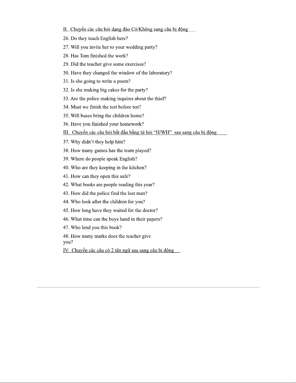 Câu bị động: Chuyển Đổi Sát Nhân & Câu Hỏi - Luyện Tập