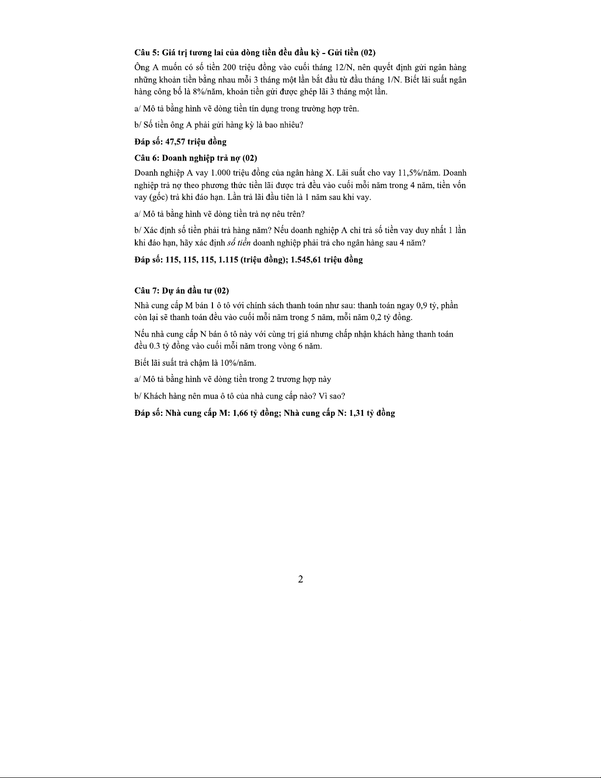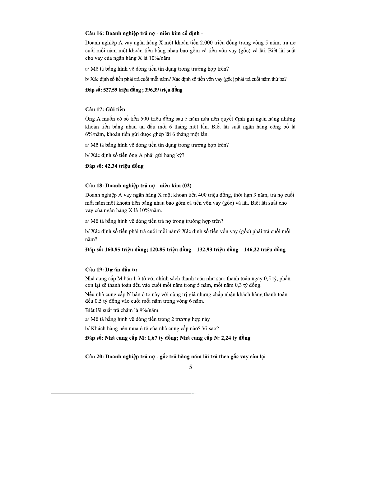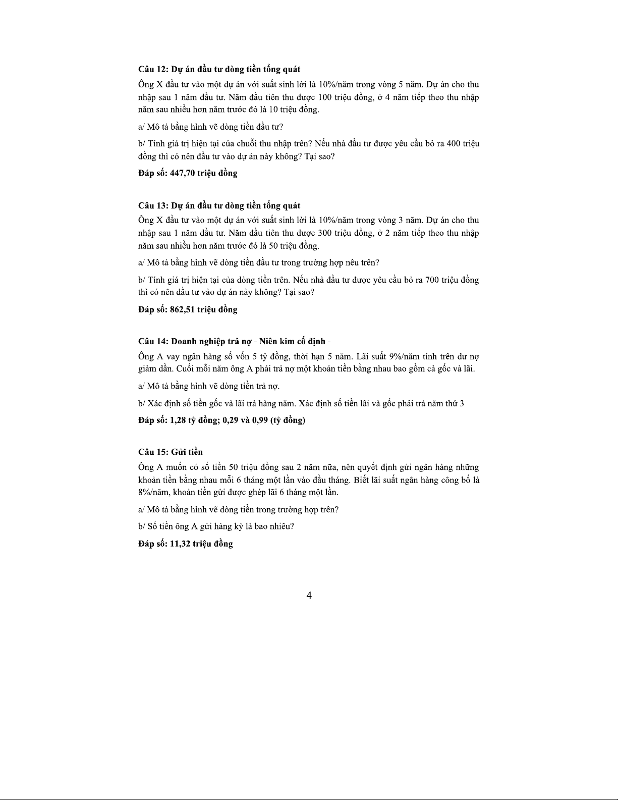 Câu hỏi bài tập - Tài chính tiền tệ - Chương 3: Thời giá tiền tệ