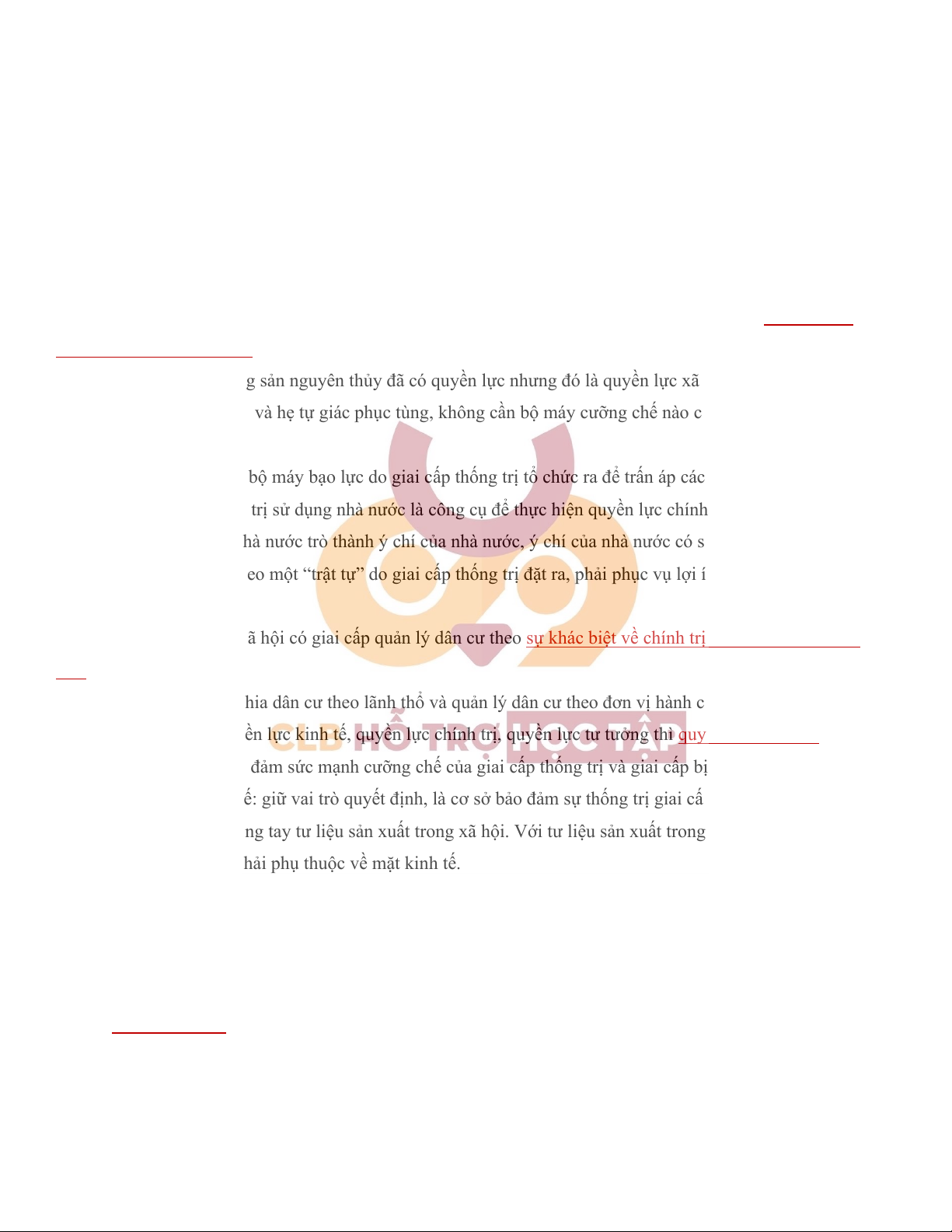 giai cấp khác phải tuân theo một “trật tự” do giai cấp thống trị đặt ra, phải phục vụ lợi ích của giai cấp thống trị.
