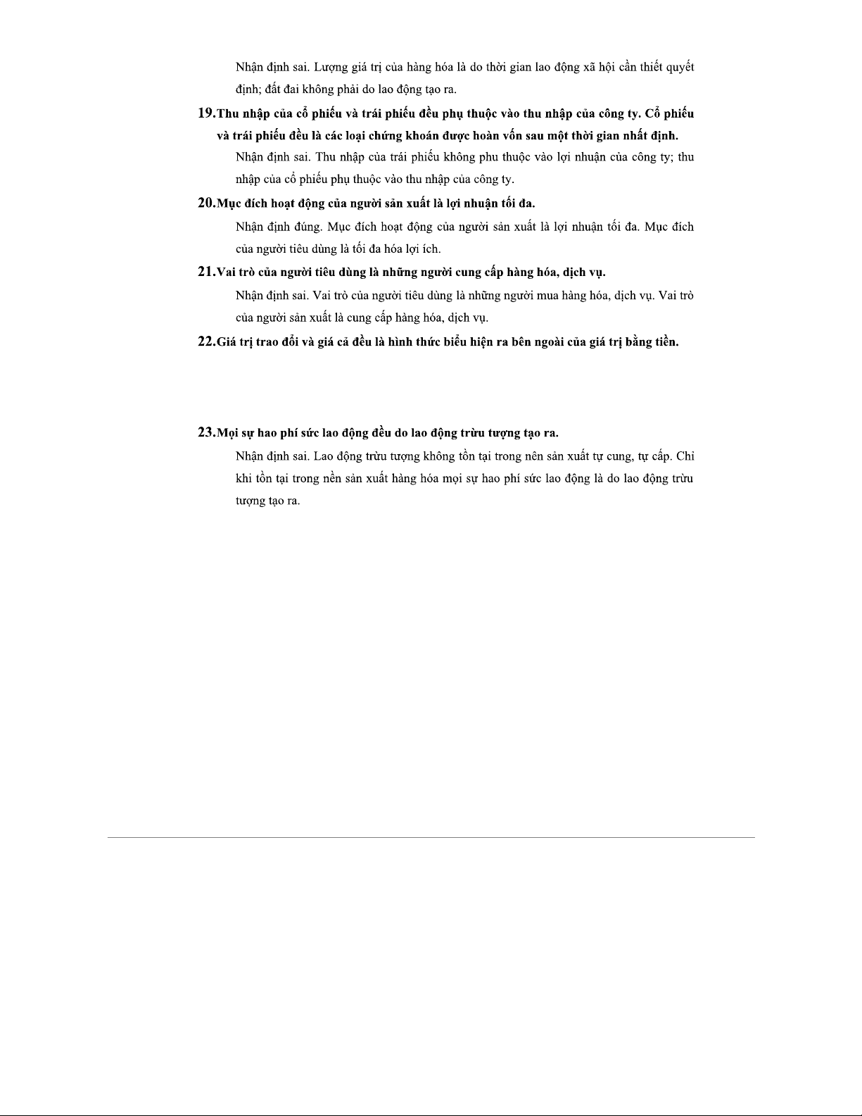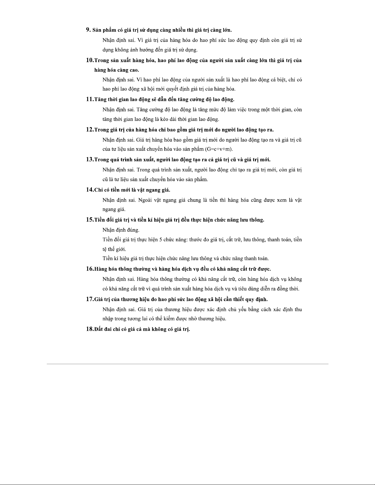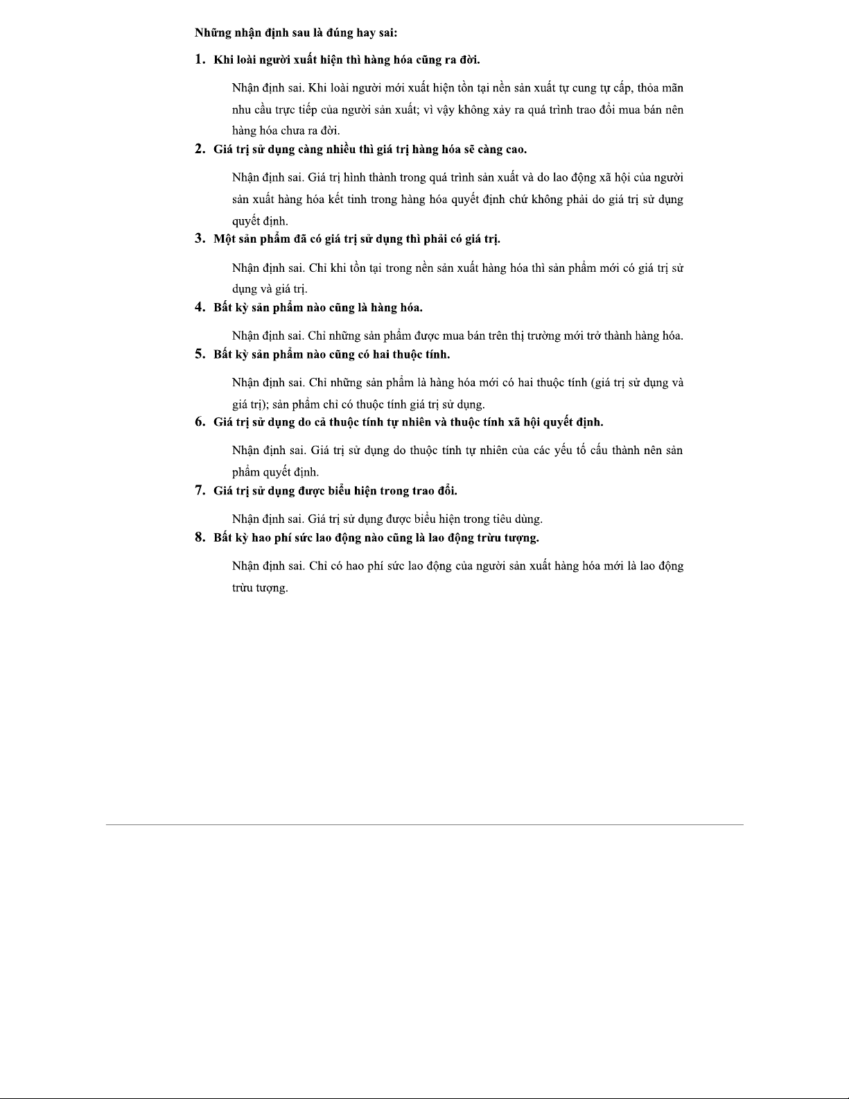 Câu hỏi đúng sai về giá trị và hàng hóa trong kinh tế học