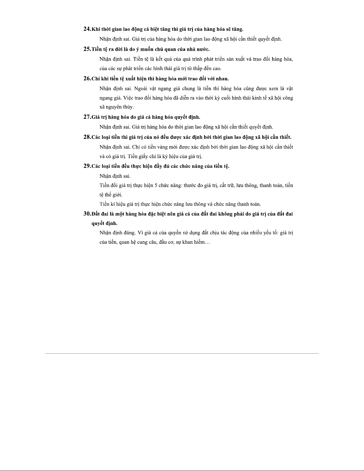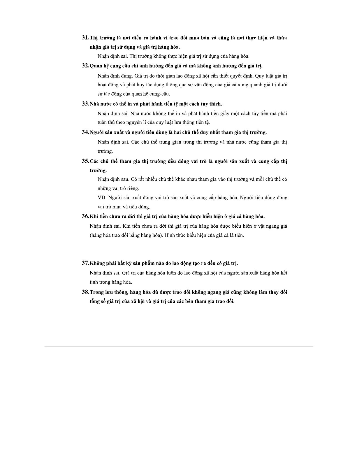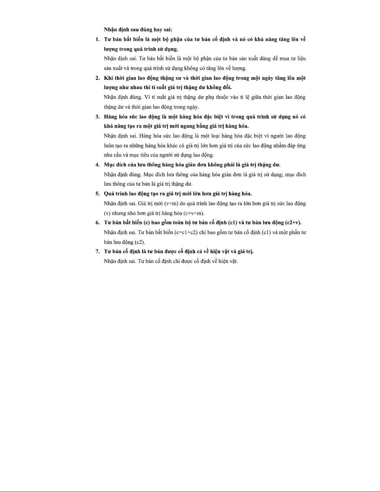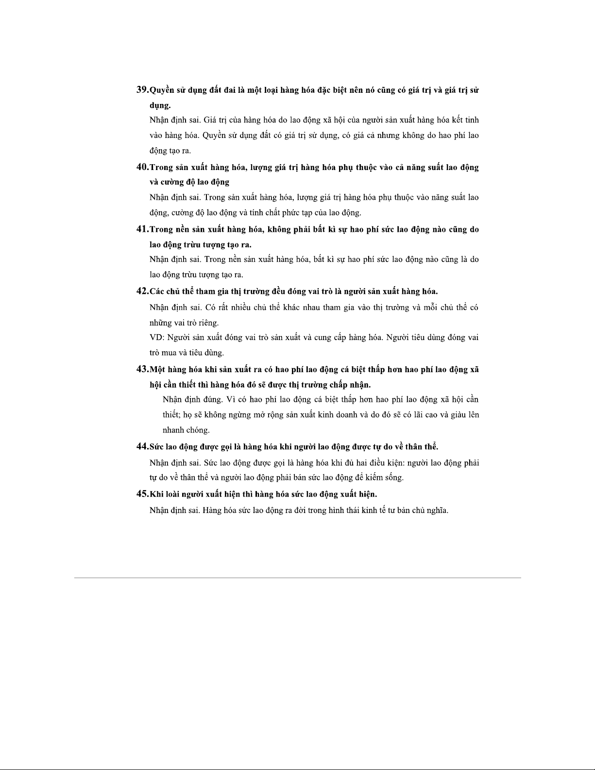Câu hỏi đúng sai về giá trị và hàng hóa trong kinh tế học