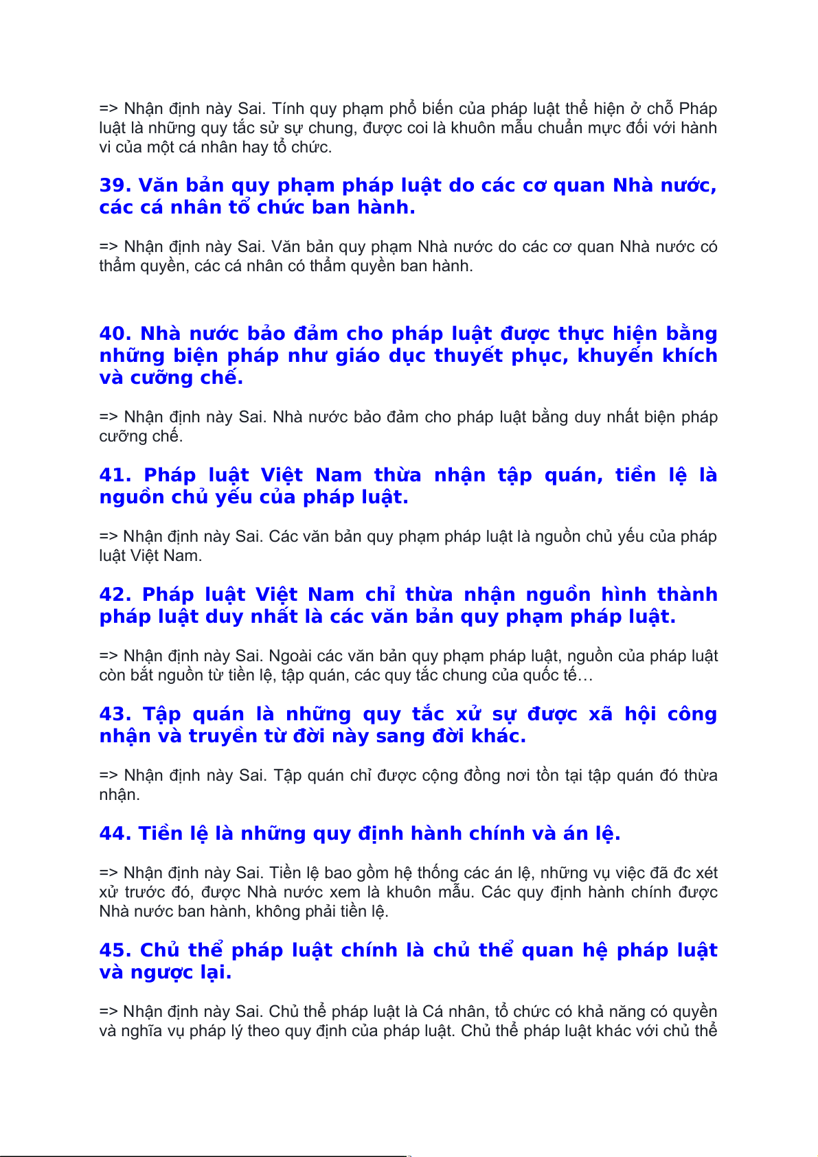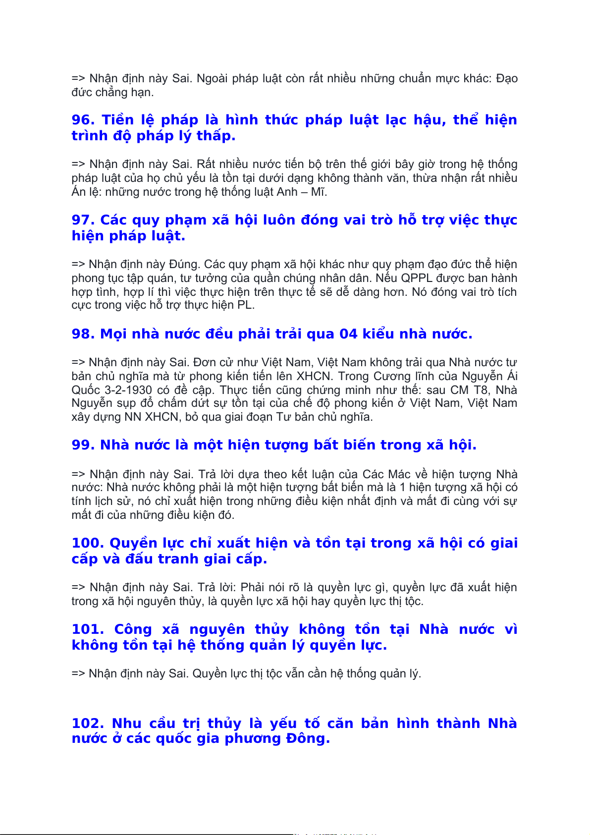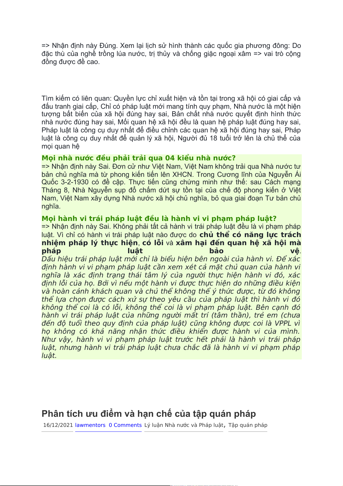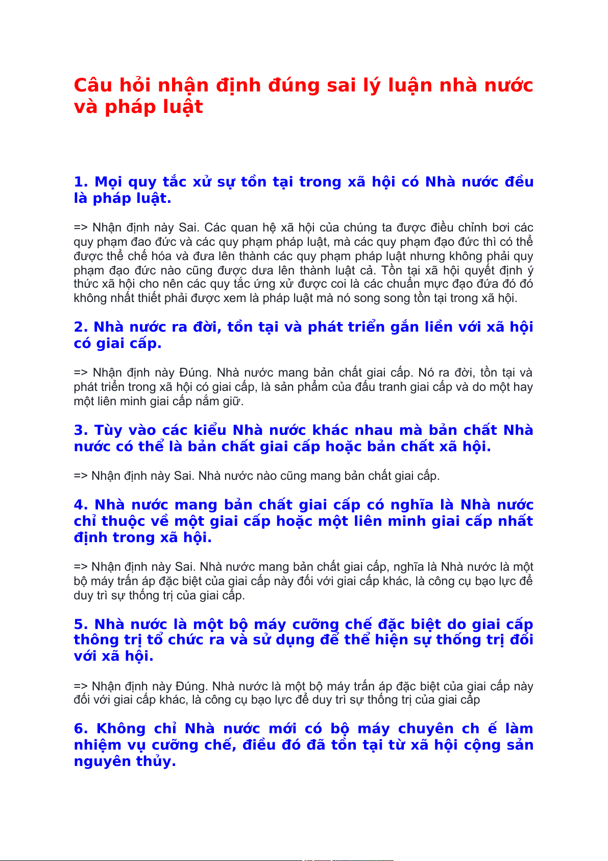 Câu hỏi nhận định đúng sai lý luận nhà nước và pháp luật