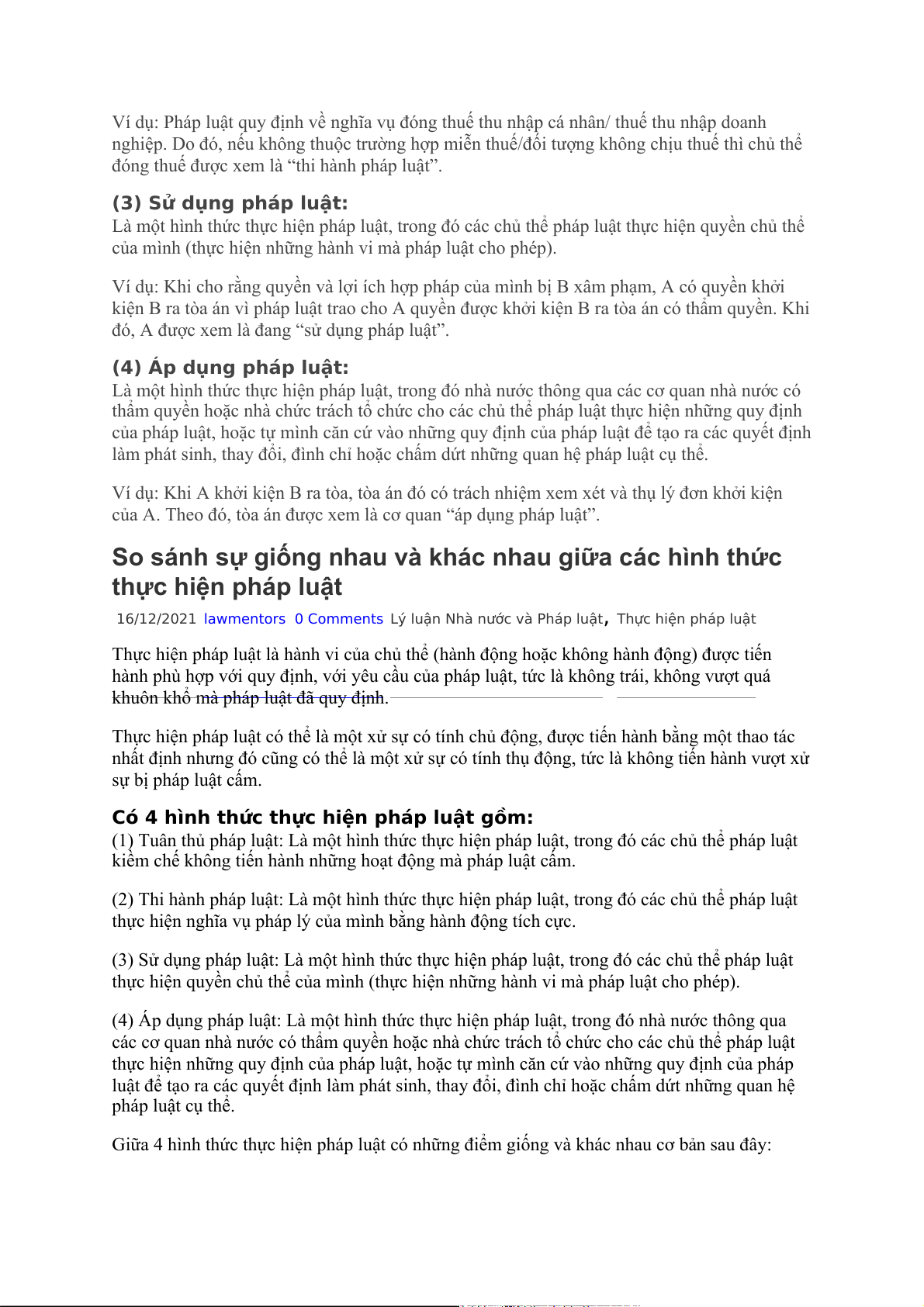được xem là tuân thủ pháp luật. (2) Thi hành pháp luật:
