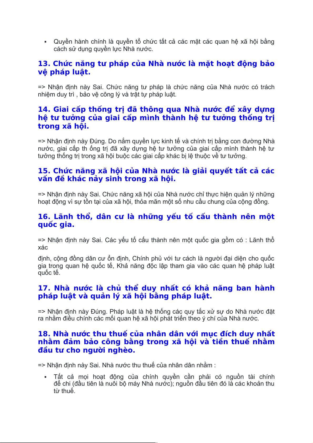 17. Nhà nước là chủ thể duy nhất có khả năng ban hành
