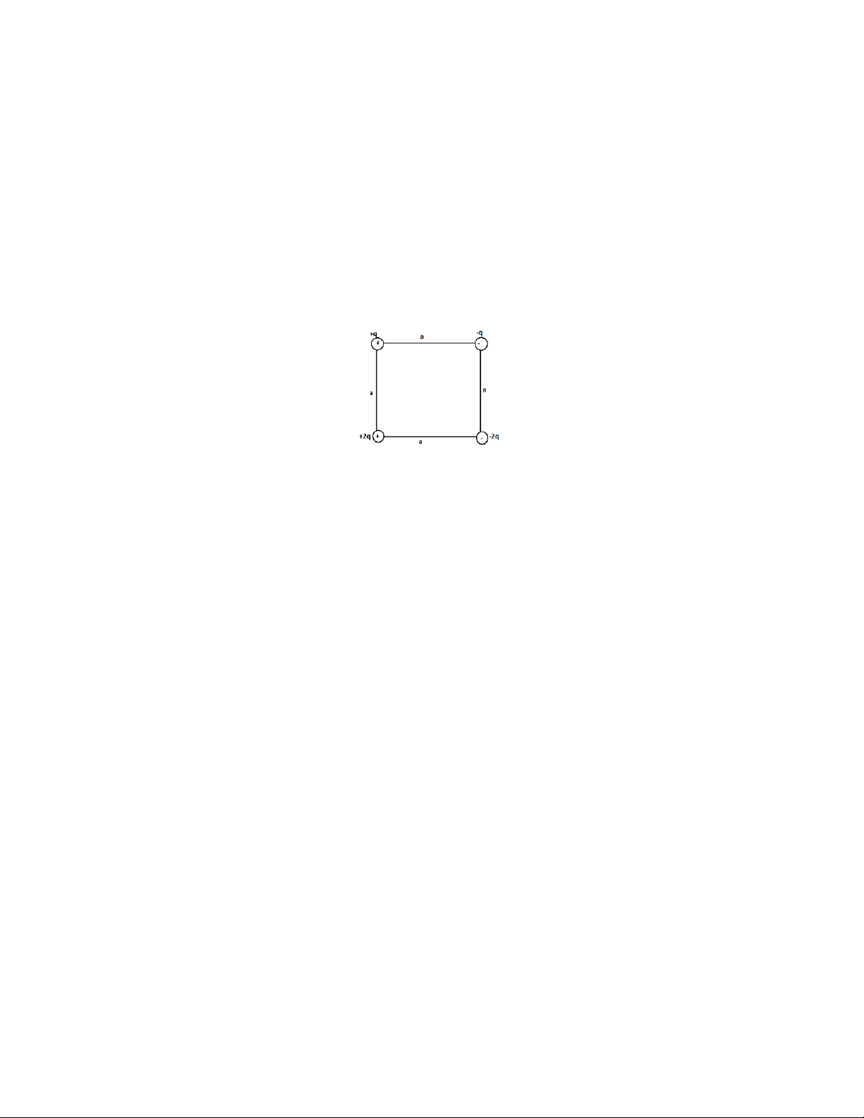 TrL 7: Xác định độ lớn và hướng của điện trường ở tâm của hình vuông (hình 8) nếu q= 1,0.10−8Cvà a= 5,0cm. Hình 8: Trl 7