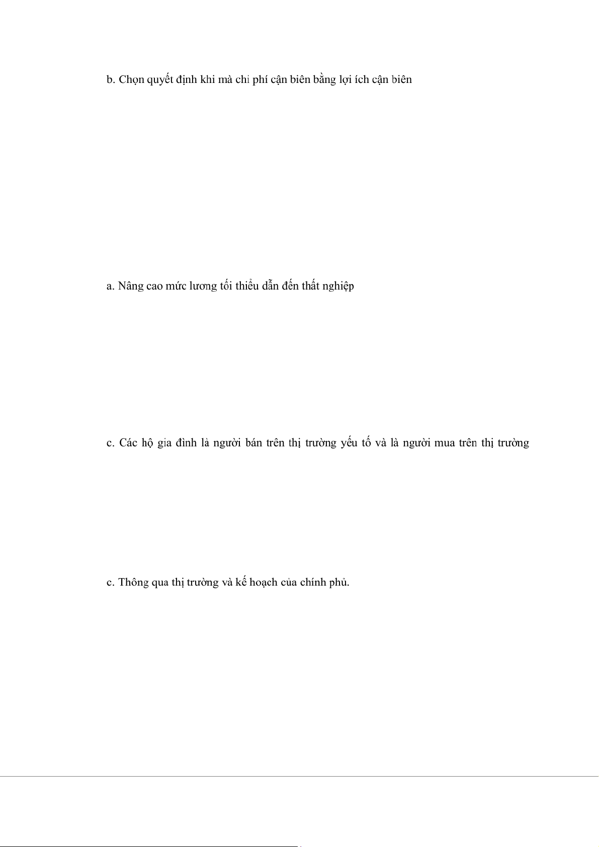 c. Chọn quyết định khi mà lợi ích cận biên nhỏ hơn chi phí cận biên.