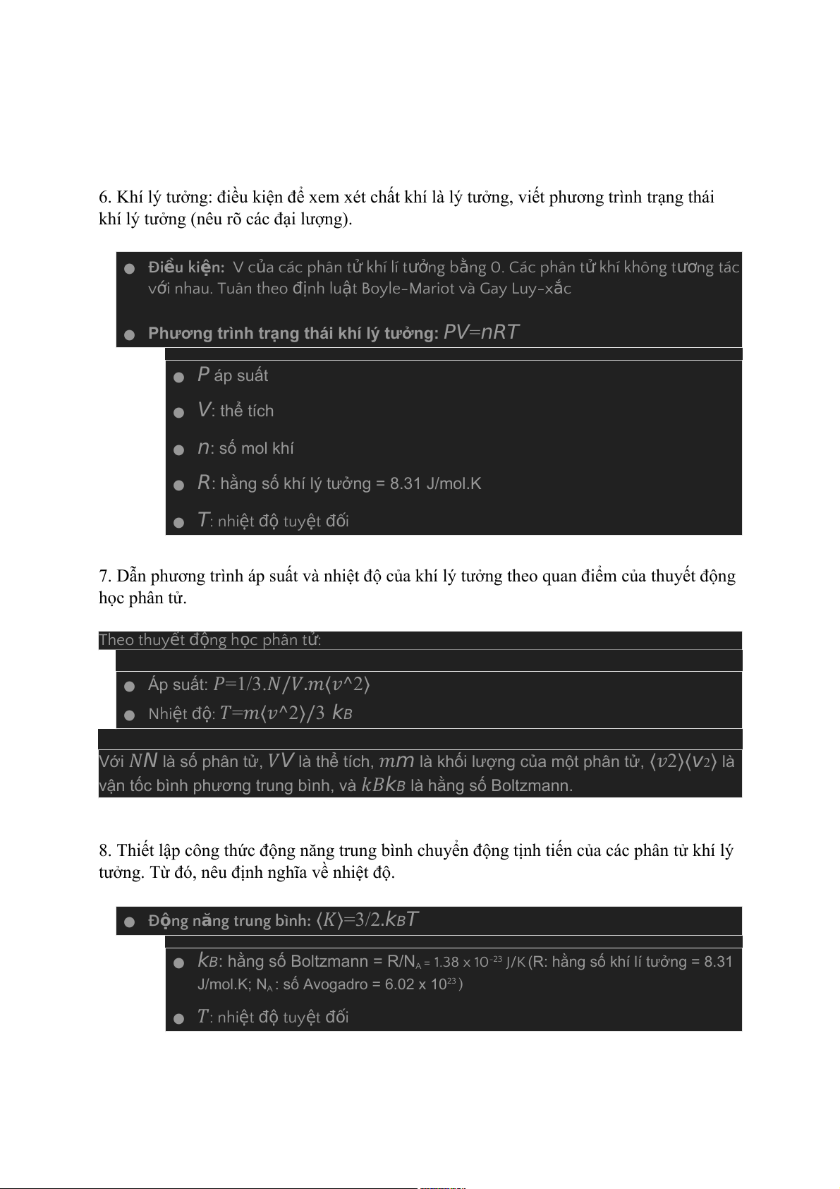 6. Khí lý tưởng: điều kiện để xem xét chất khí là lý tưởng, viết phương trình trạng thái