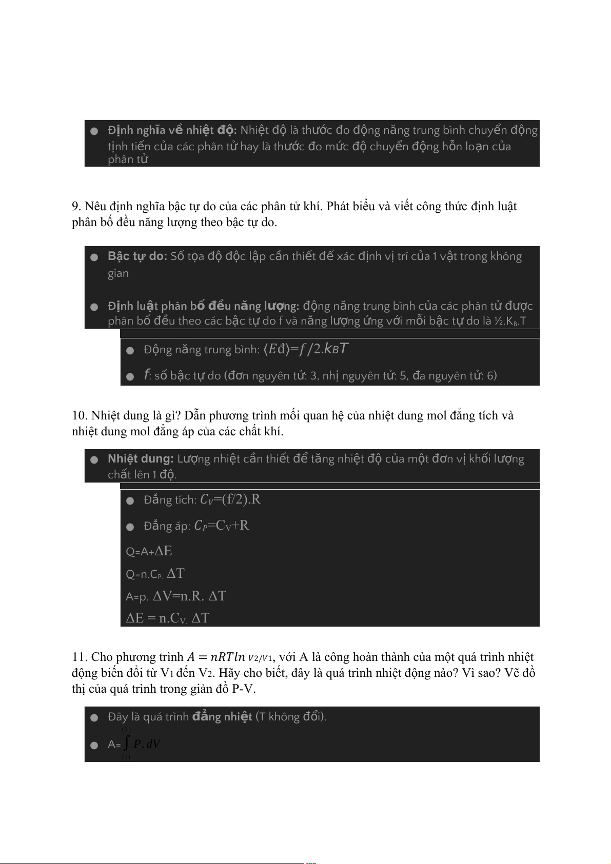 9. Nêu định nghĩa bậc tự do của các phân tử khí. Phát biểu và viết công thức định luật