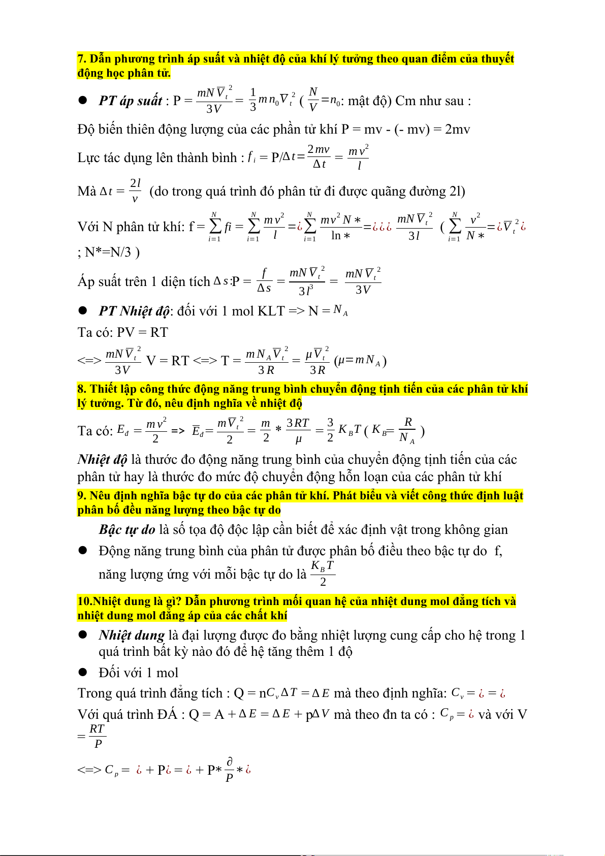 9. Nêu định nghĩa bậc tự do của các phân tử khí. Phát biểu và viết công thức định luật