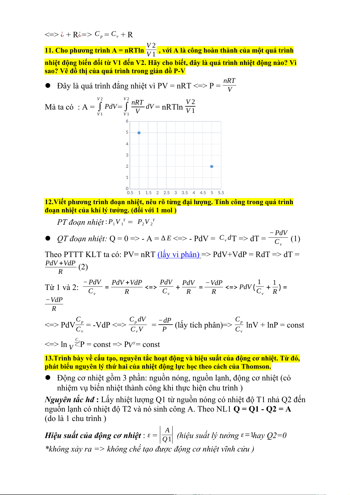 (PTKLT: PV = nRT => P = RT ; PTĐN : P V = P V V 1 1 2 2 R T V γ R T V γ
