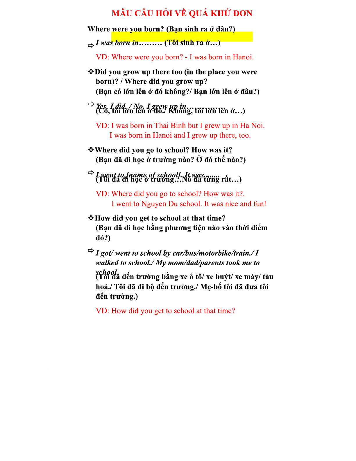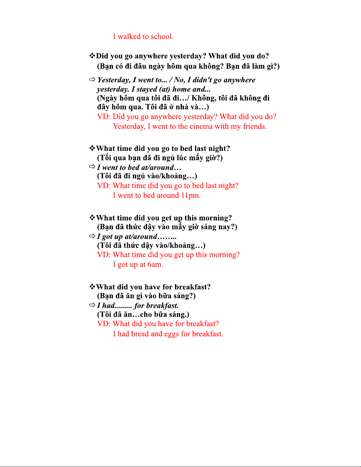 Câu Hỏi Mẫu Về Quá Khứ Đơn - Luyện Tập Tiếng Anh 101