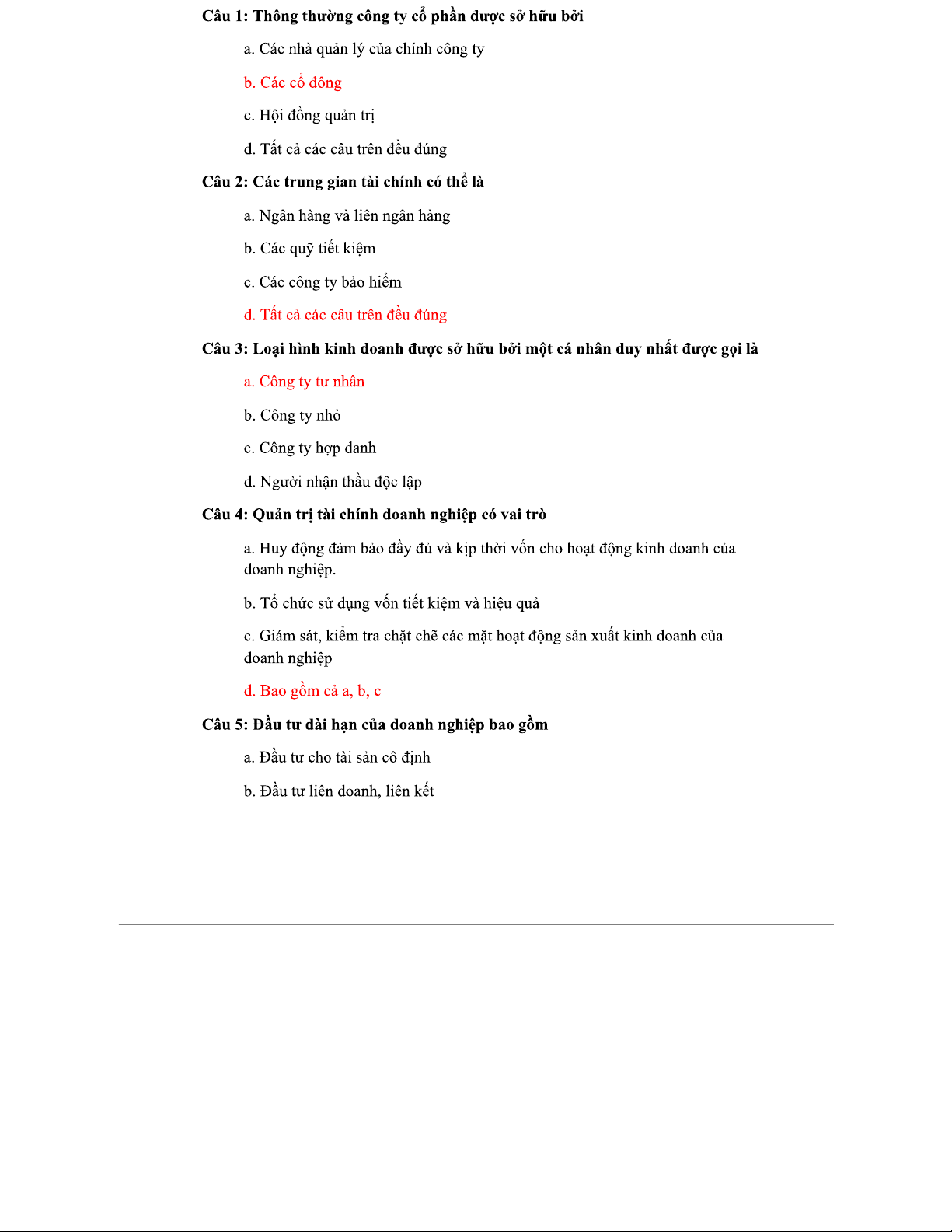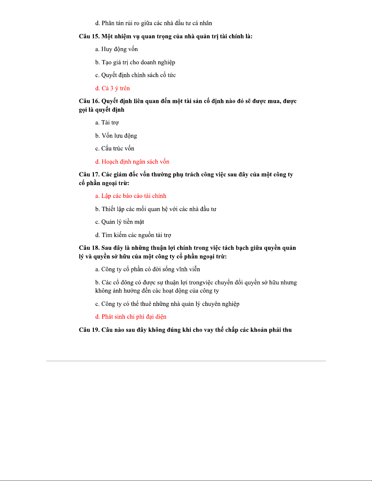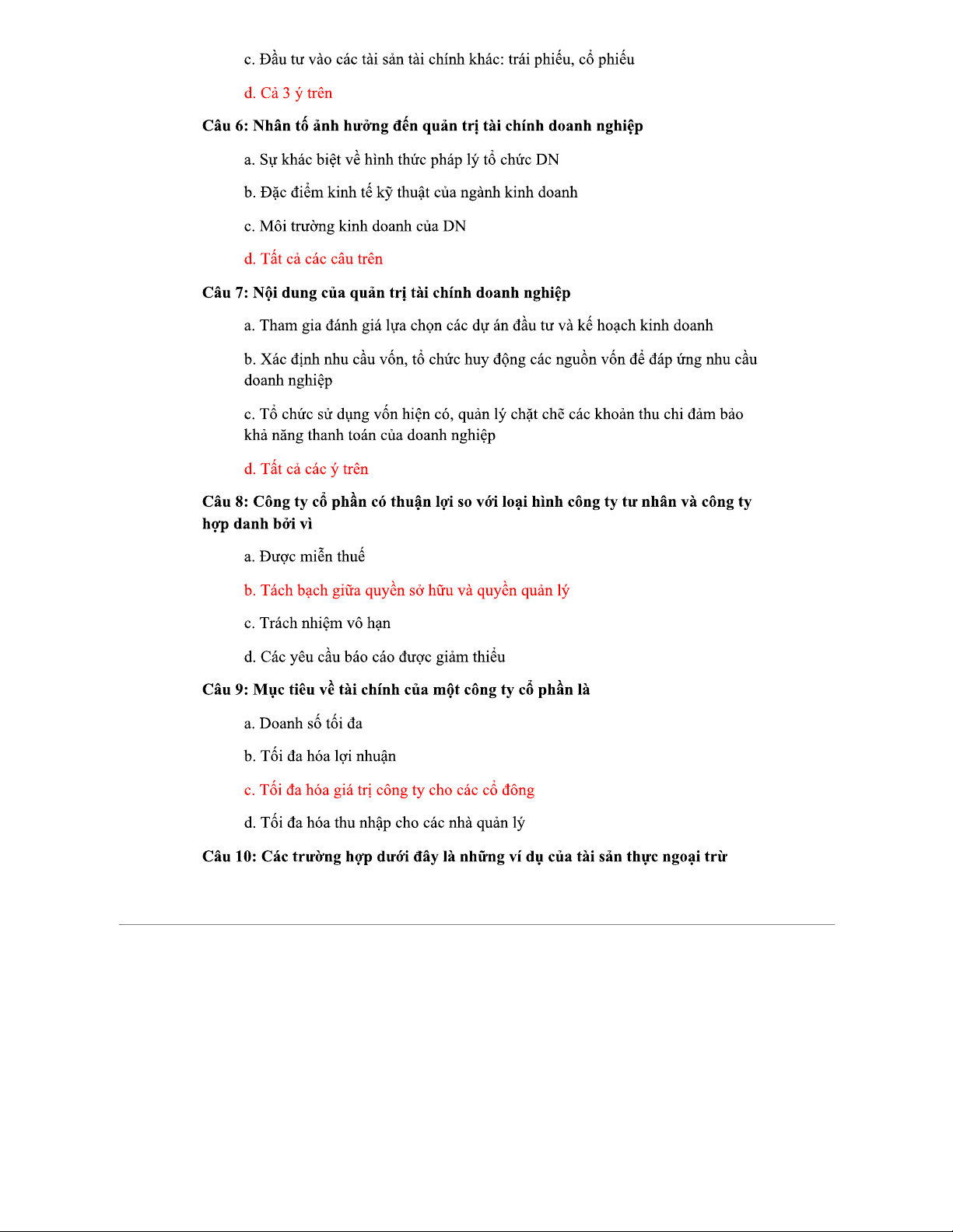 Câu hỏi nhóm môn NMTCTT - Tài chính doanh nghiệp