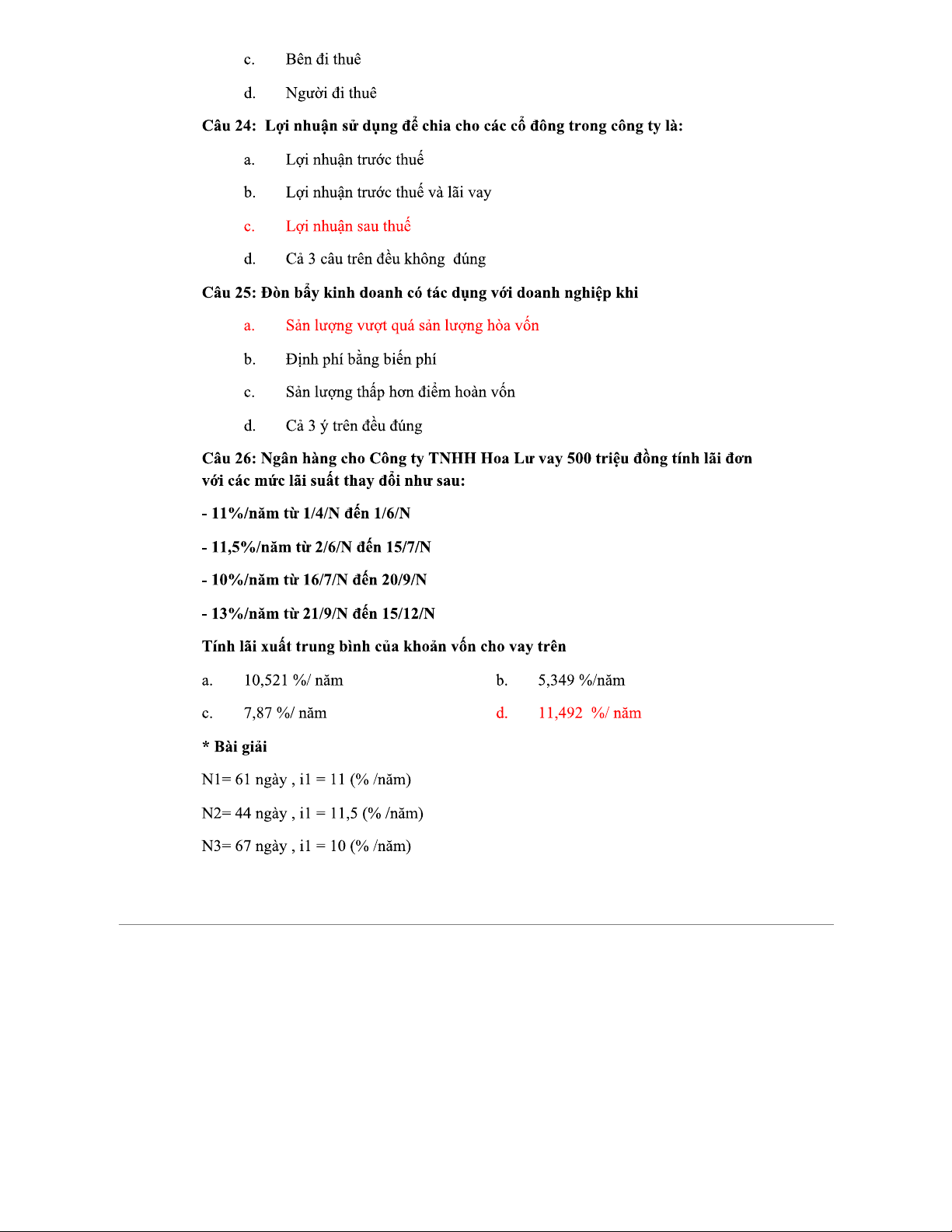 Bài Tập Tài Chính Doanh Nghiệp Với Đáp Án (TCDN 2023)
