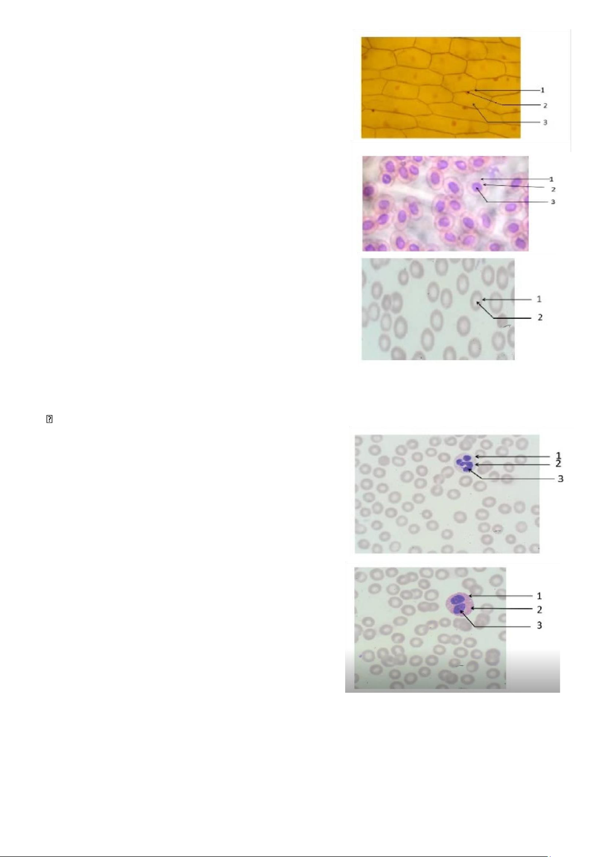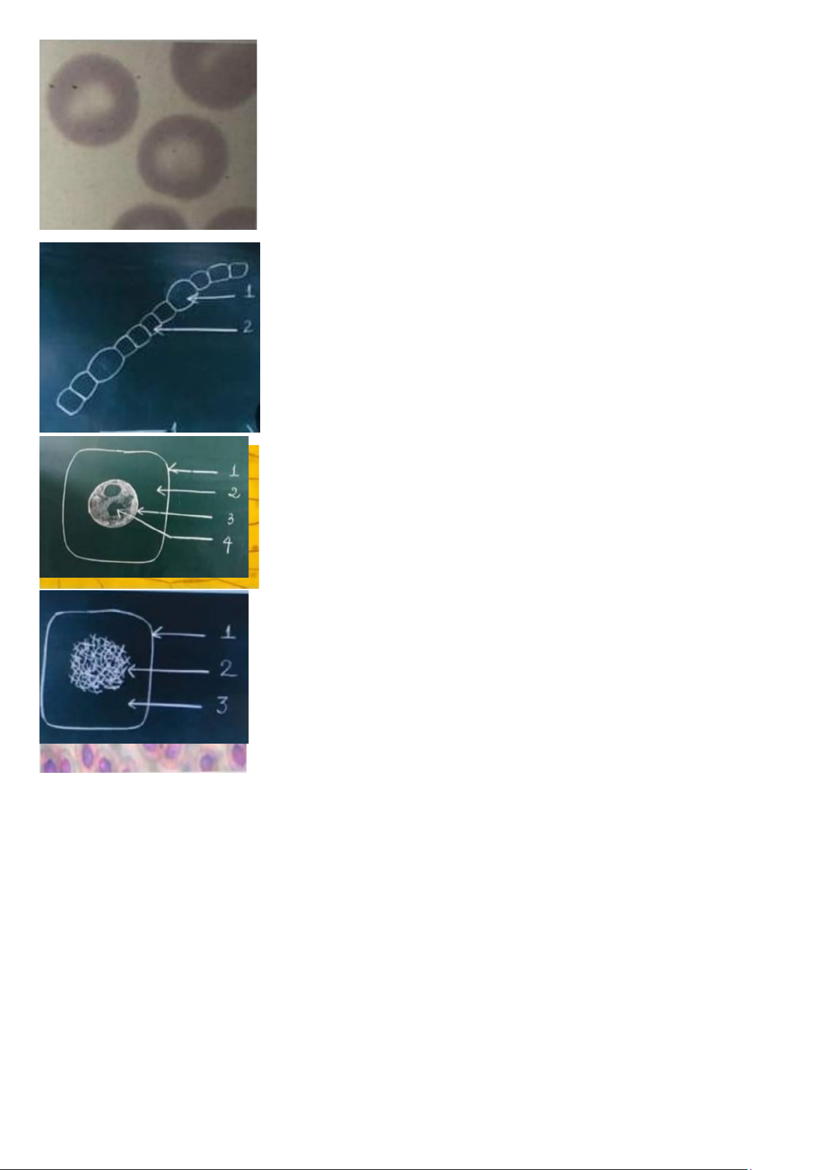 Tế bào máu người ( hình dĩa , không nhân) lOMoAR cPSD| 46342576 Vi khuẩn lam Biểu bì hành tây Hồng cầu máu ếch
