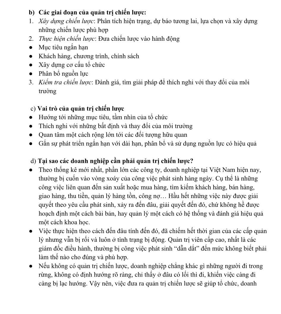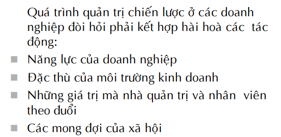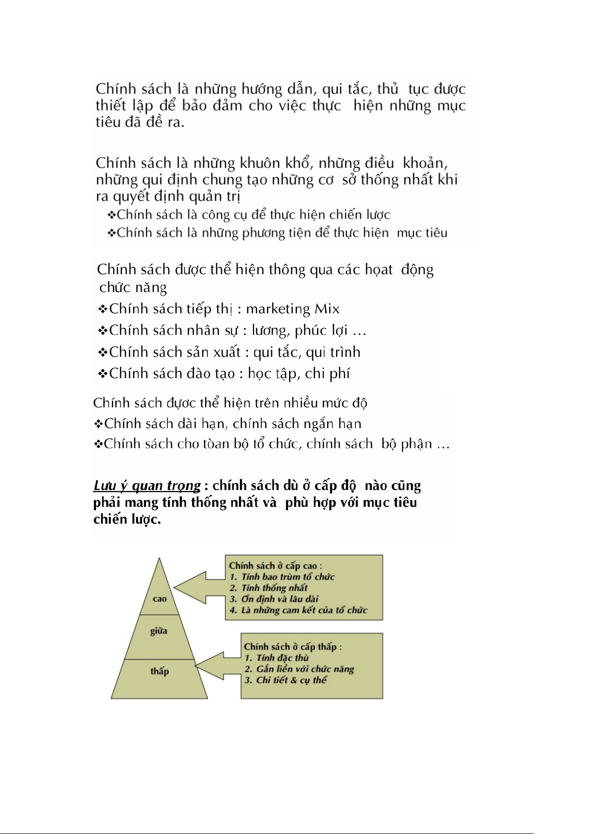 - Từ chiến lược, các nhà quản trị sẽ xác định được những mục tiêu lớn, định hướng phát triển, và từ đó xây dựng các chính sách cụ thể.