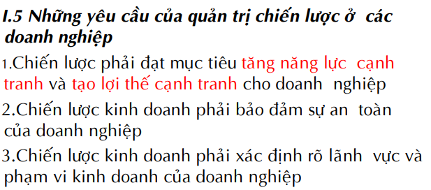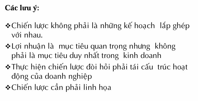 Như vậy, cần chú ý 3 vấn đề cơ bản của chiến lược: NGUỒN LỰC, LỢI THẾ CẠNH TRANH, PHÁT TRIỂN