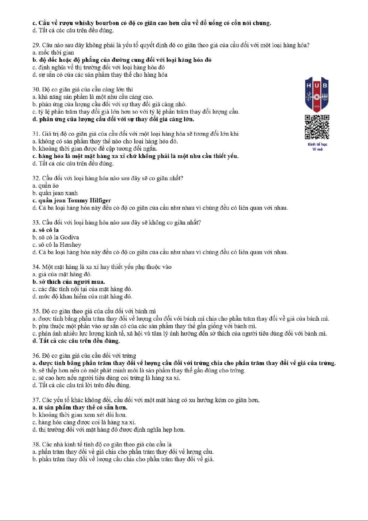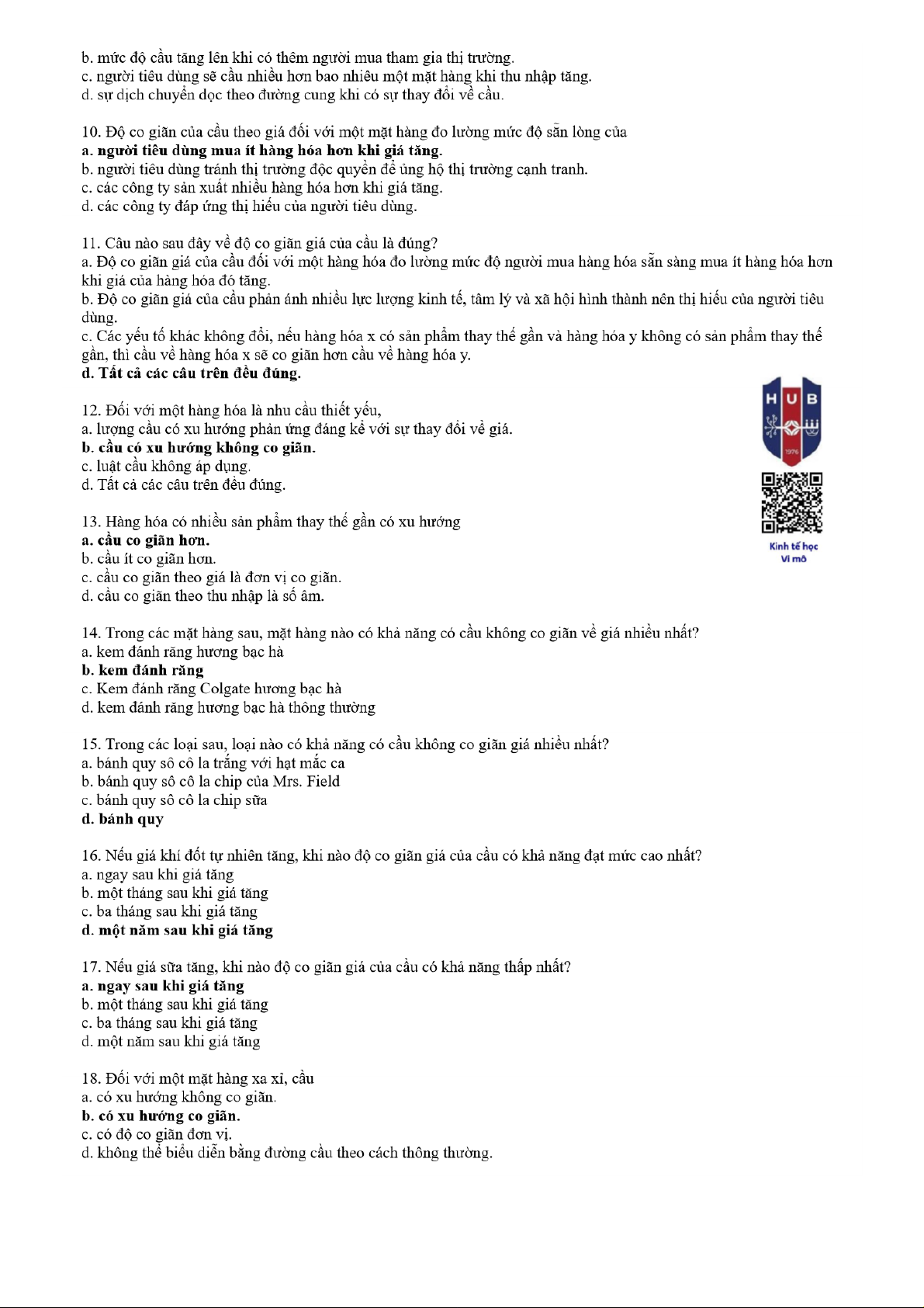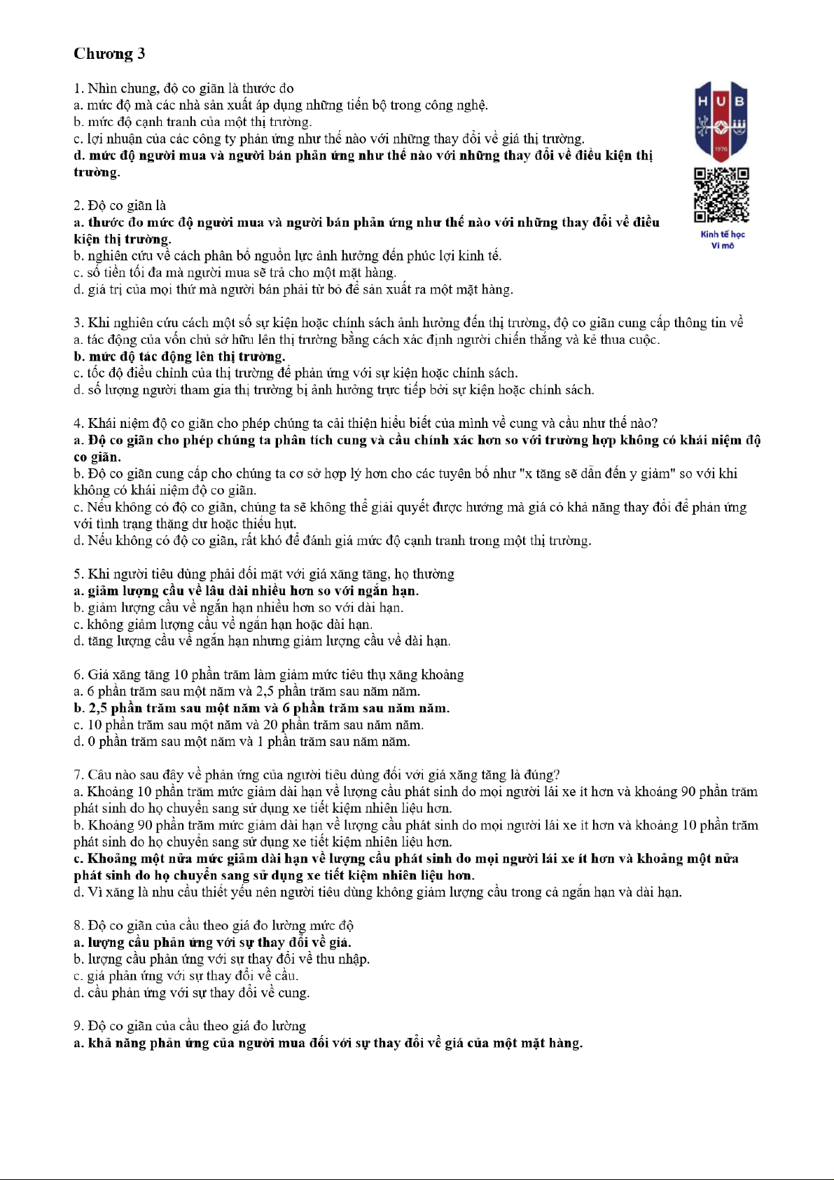 Câu hỏi ôn tập Chương 3 môn Kinh tế học vi mô | Trường Đại học ngân hàng Thành phố Hồ Chí Minh