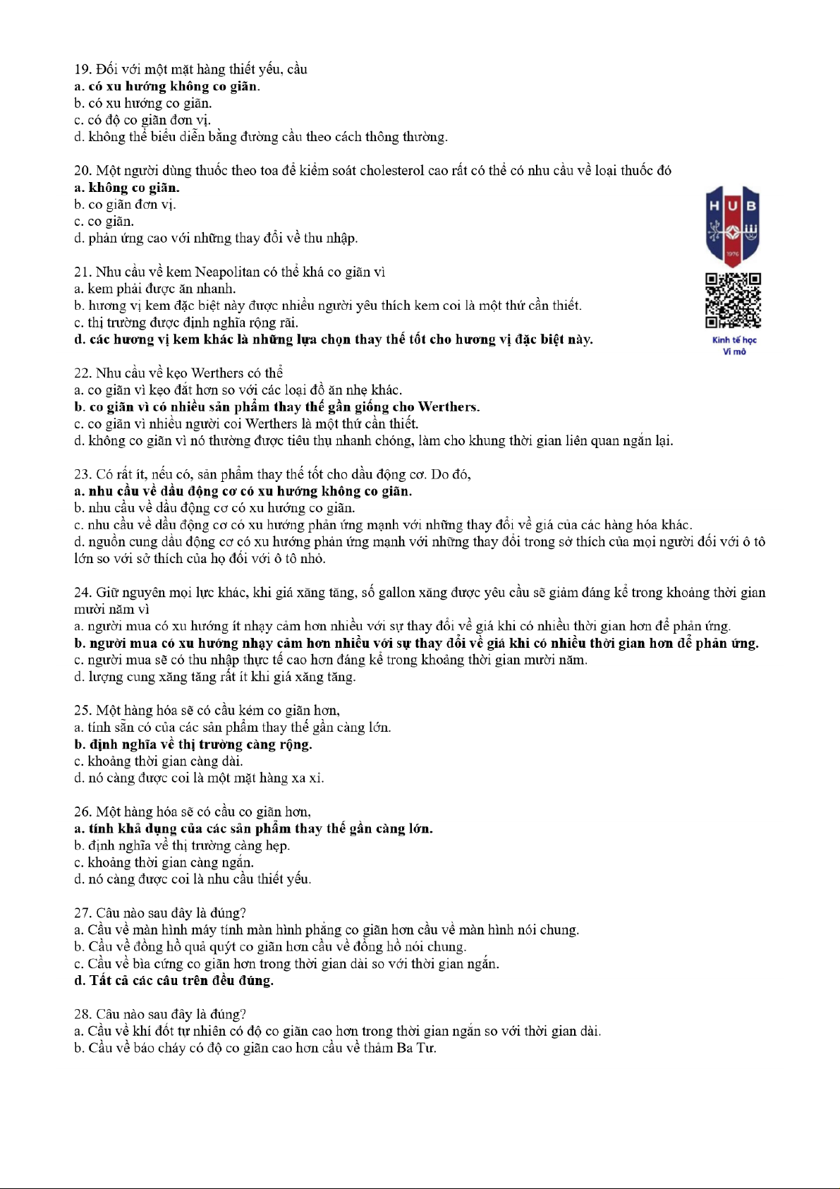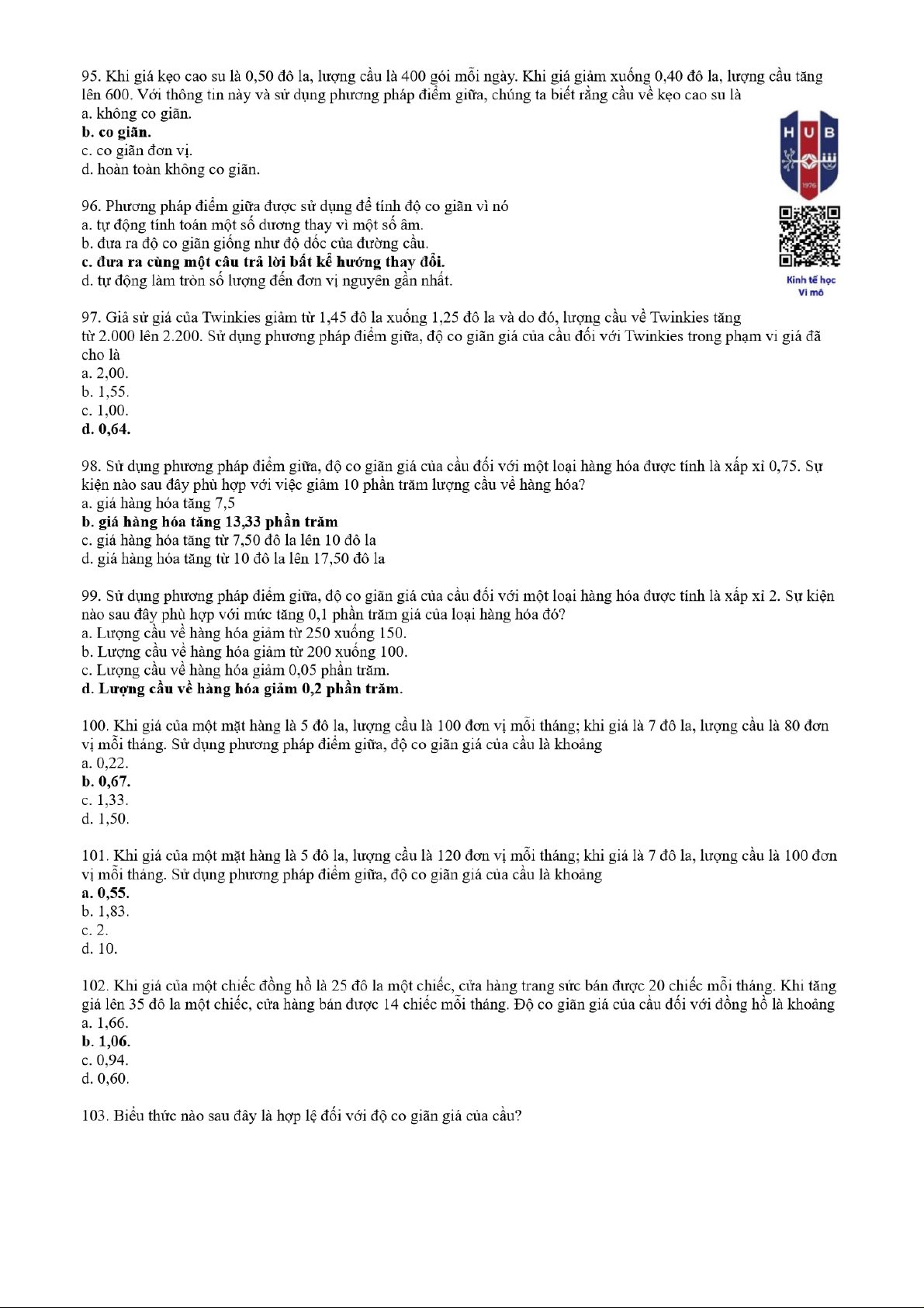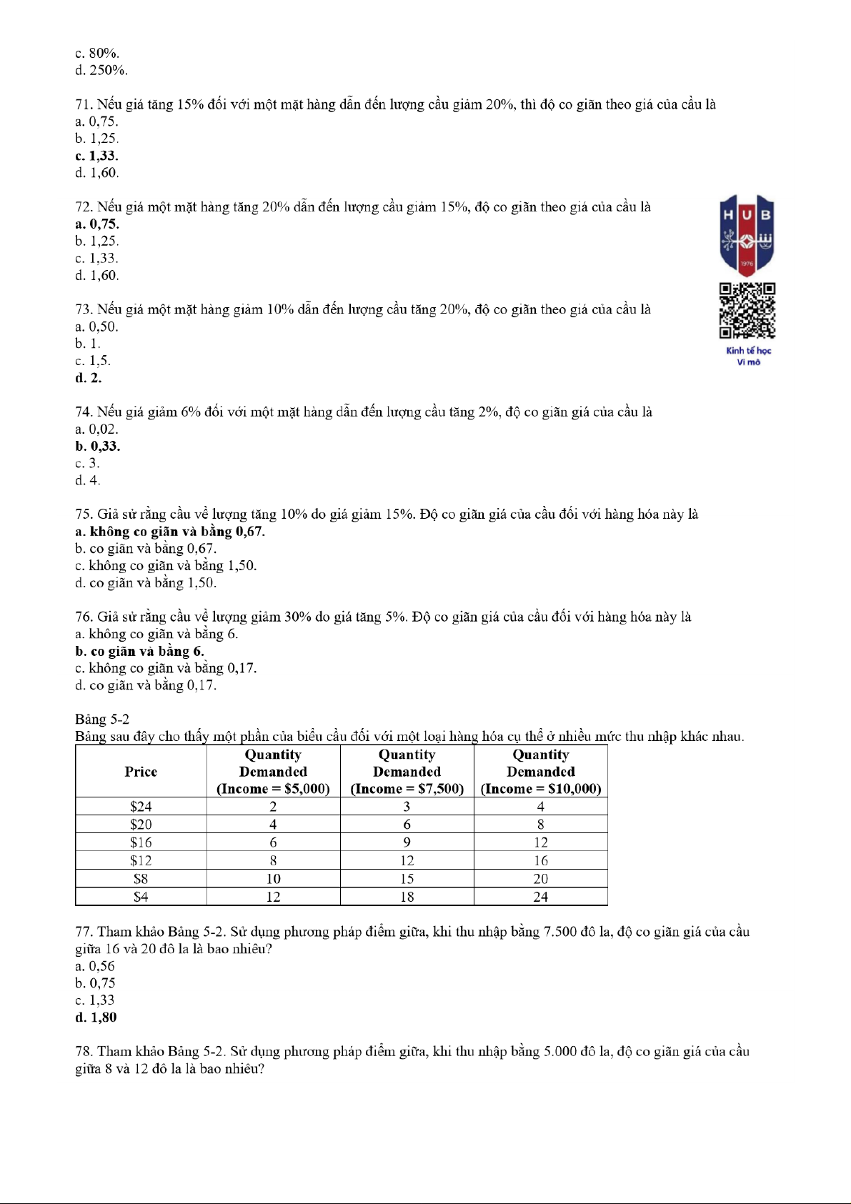 Câu hỏi ôn tập Chương 3 môn Kinh tế học vi mô | Trường Đại học ngân hàng Thành phố Hồ Chí Minh