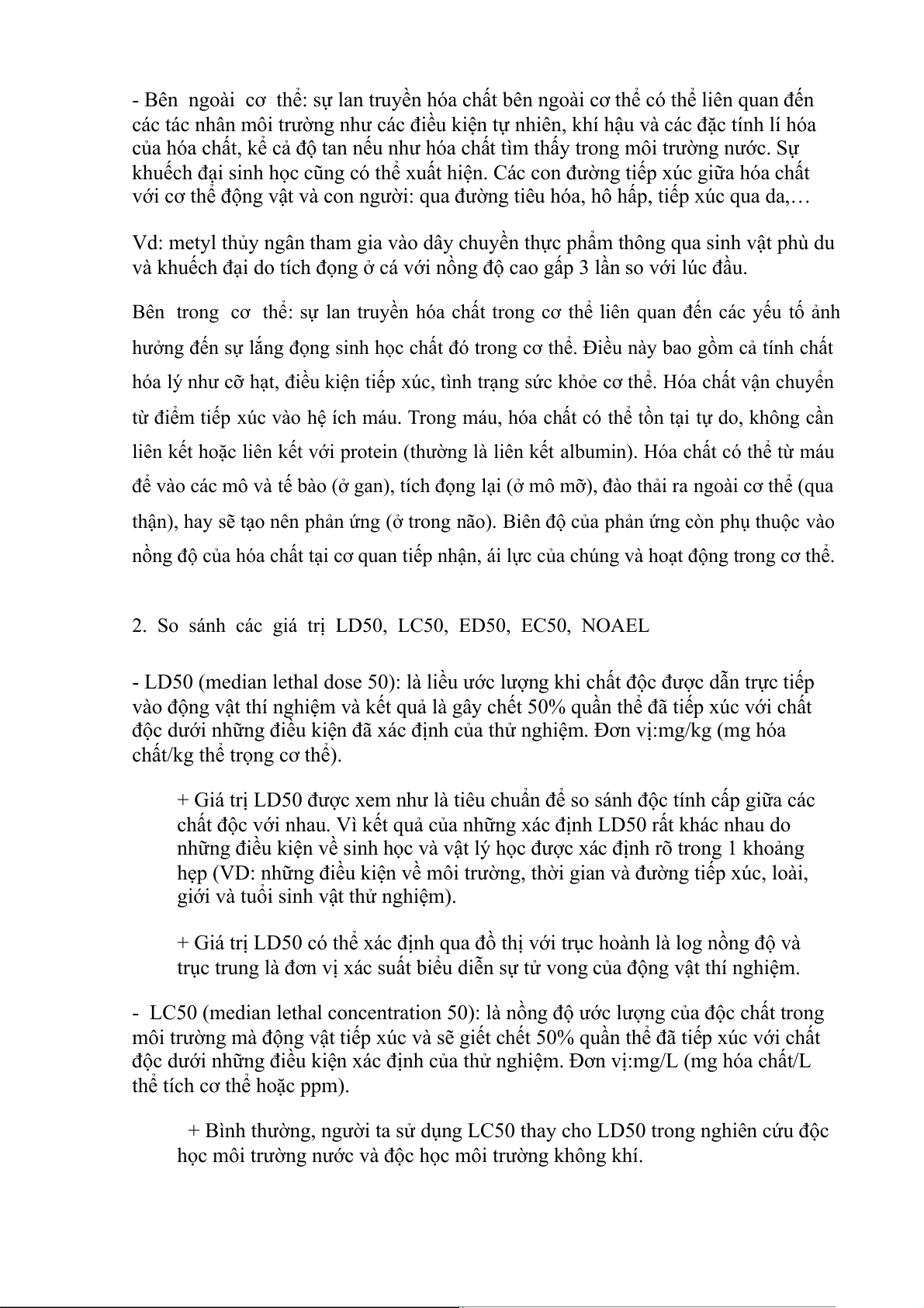 2. So sánh các giá trị LD50, LC50, ED50, EC50, NOAEL