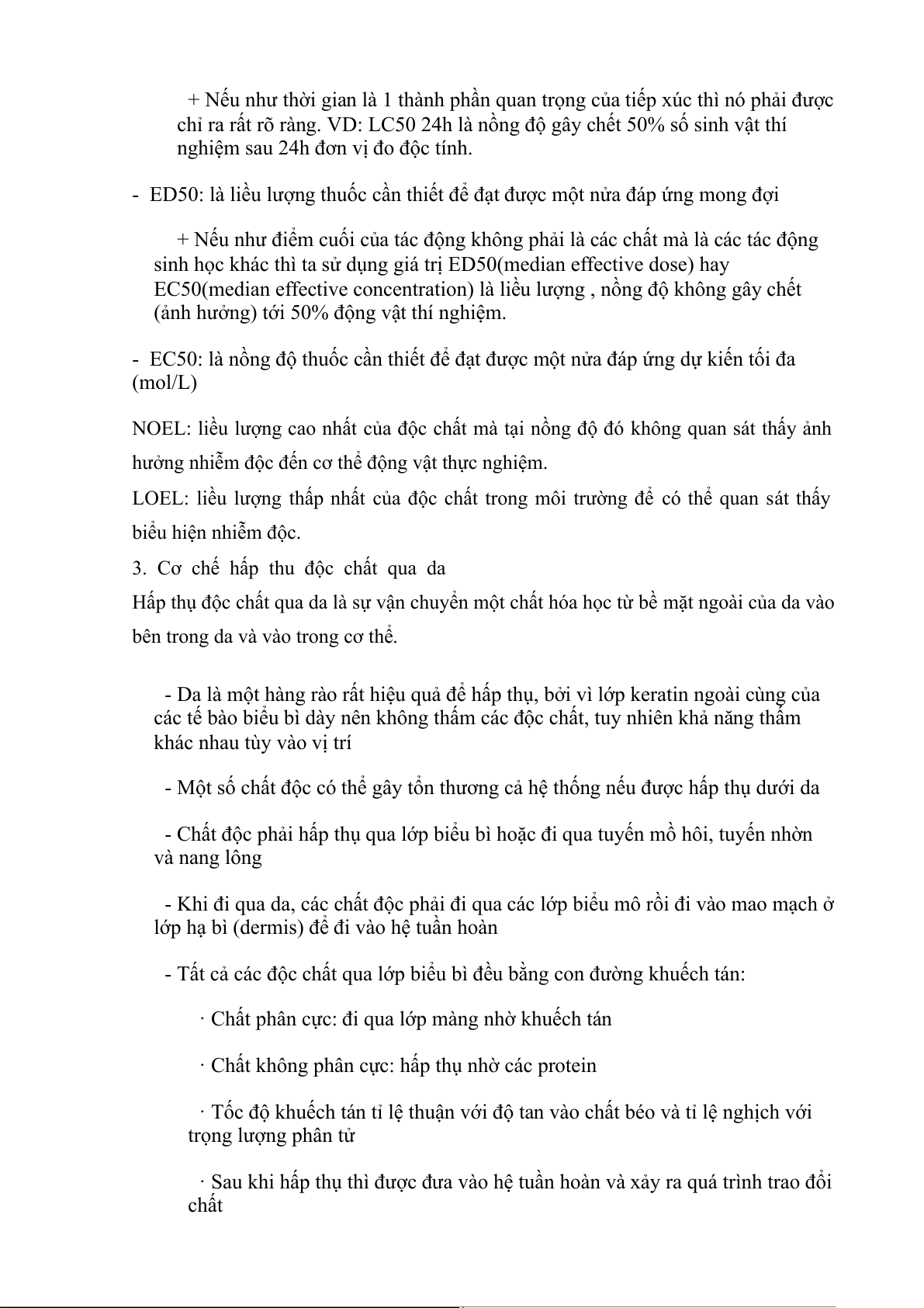 - Tất cả các độc chất qua lớp biểu bì đều bằng con đường khuếch tán: