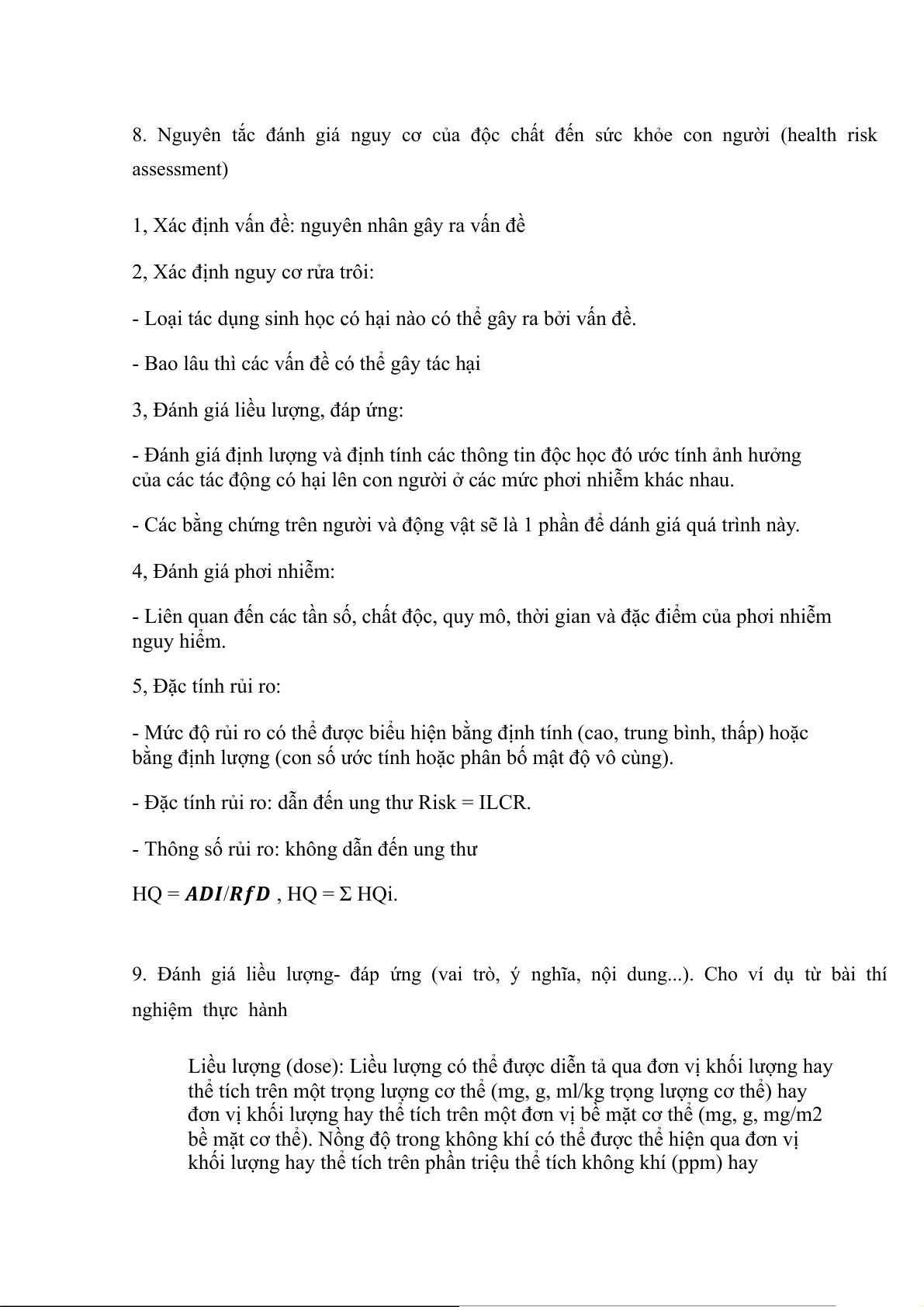Câu 13: đánh giá rủi ro sức khỏe ( các bước) Các bước