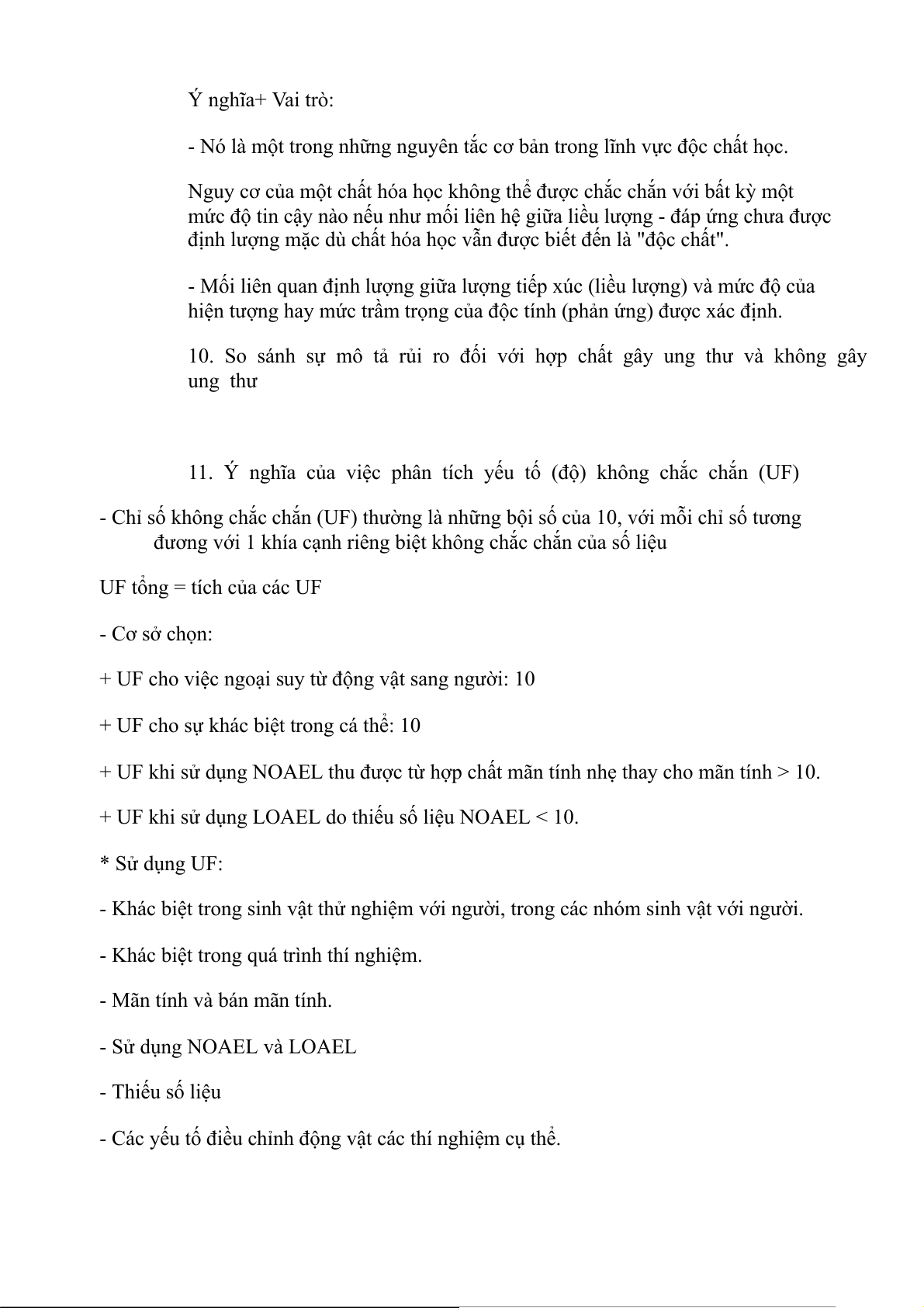 + UF khi sử dụng LOAEL do thiếu số liệu NOAEL < 10. * Sử dụng UF: