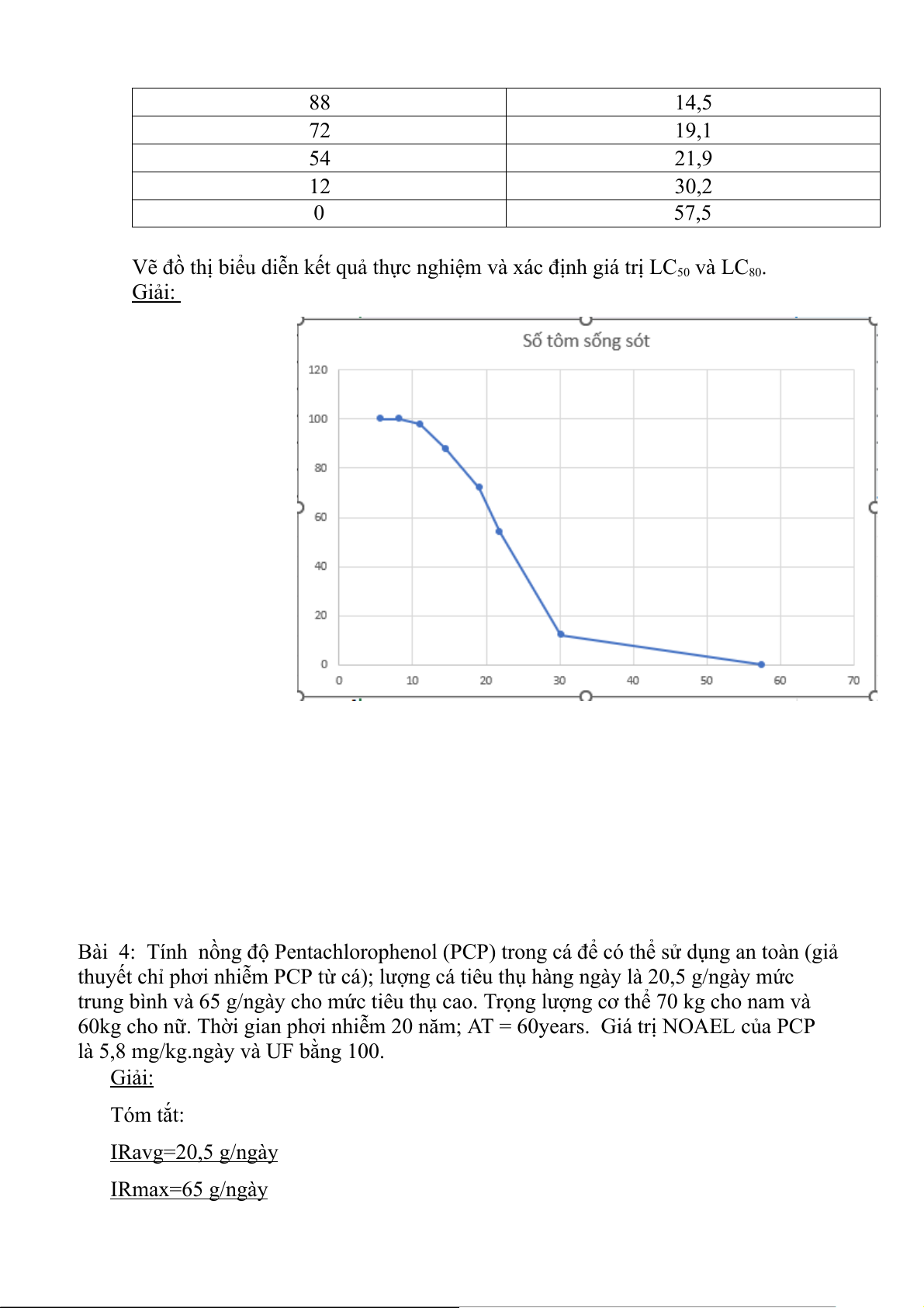 Vẽ đồ thị biểu diễn kết quả thực nghiệm và xác định giá trị LC50 và LC80. Giải: Bài 4: