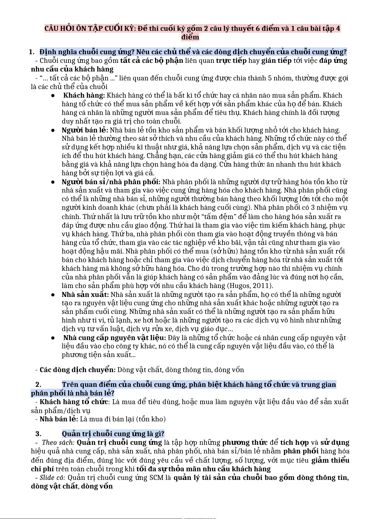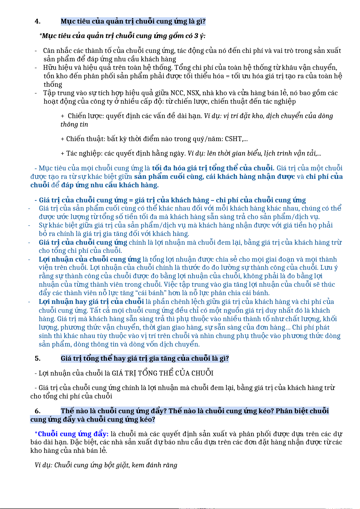 - Slide cô: Quản trị chu i ỗ cung n ứ g SCM là qu n ả lý tài sản c a ủ chu i ỗ bao g m ồ dòng thông tin, dòng v t ậ ch t ấ , dòng v n ố 4. M c ụ tiêu của qu n ả tr ịchu i ỗ cung n ứ g là gì? *M c ụ tiêu c a ủ qu n ả tr ịchu i ỗ cung n ứ g g m ồ có 3 ý: - Cân nhắc các thành t ố c a ủ chu i ỗ cung ứng, tác đ n ộ g c a ủ nó đ n
