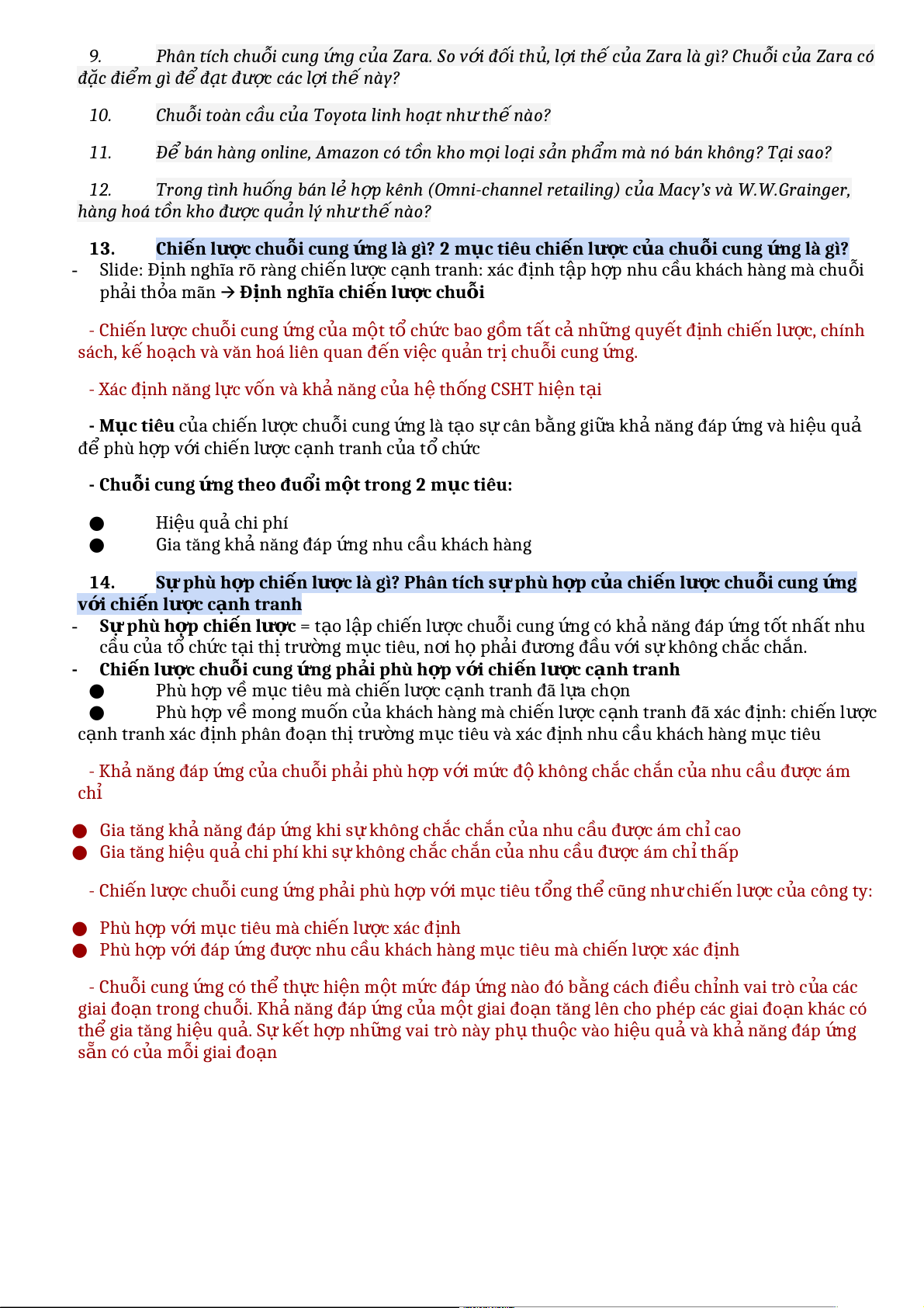 ỗ Apple? (Sách trang 61) 9. Phân tích chu i ỗ cung n ứ g c a ủ Zara. So v i ớ đ i ố th , ủ l i ợ th ế c a ủ Zara là gì? Chu i ỗ c a ủ Zara có đ c ặ điểm gì đ ể đ t ạ đ c ượ các l i ợ thế này? 10. Chu i ỗ toàn c u ầ c a ủ Toyota linh ho t ạ nh ư th ế nào? 11.