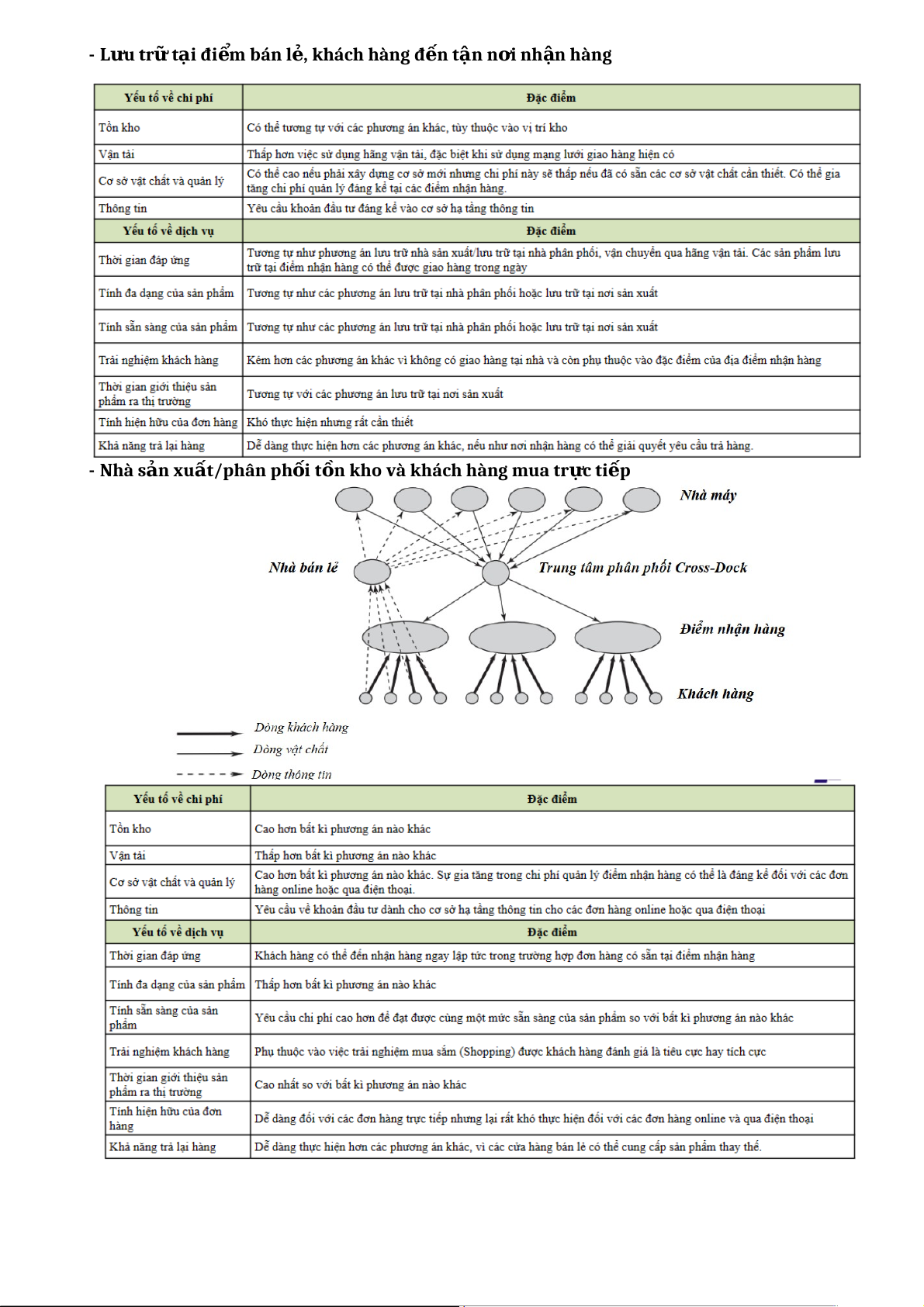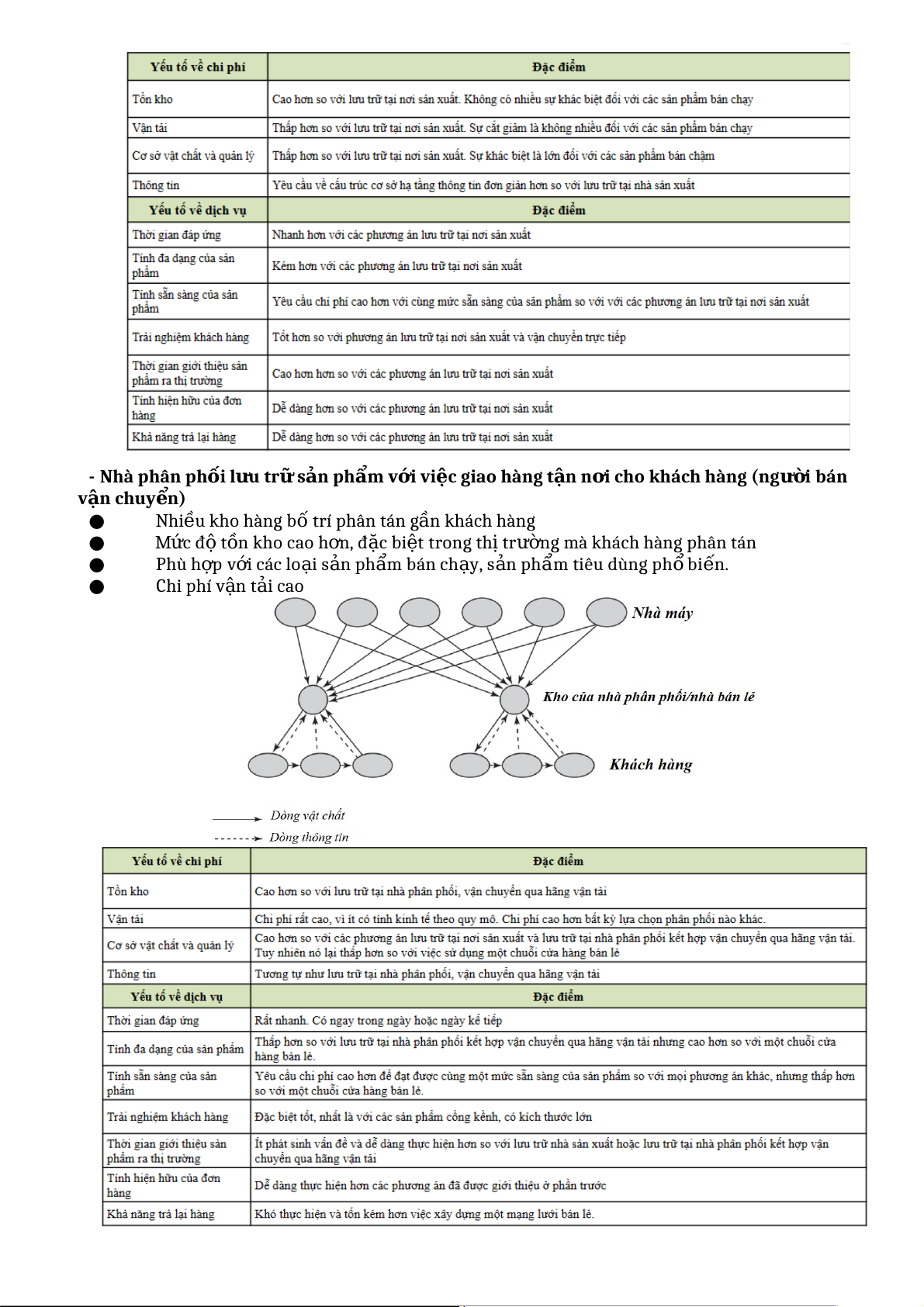 ơ hàng từ khi đặt cho đến khi nh n ậ hàng ● Kh ả năng trả l i ạ hàng: Y u ế t ố này ph n ả n ả h kh ả năng d ễ dàng trong vi c ệ tr ả l i ạ hàng hoá và kh ả năng m n ạ g lưới x ử lý vi c ệ này. 18. Nêu 6 ph n ươ g án thi t ế k ế mạng l i ướ phân ph i ố . M i ỗ ph n ươ g án vẽ s ơ đ ồ m n ạ g l i ướ phân ph i ố , cho ví d , ụ phân tích u ư nh c ượ đi m ể và đi u ề ki n ệ áp d n ụ g. *Lưu tr ữ t i ạ n i ơ sản xu t ấ và vận chuy n ể tr c ự ti p ế đ n