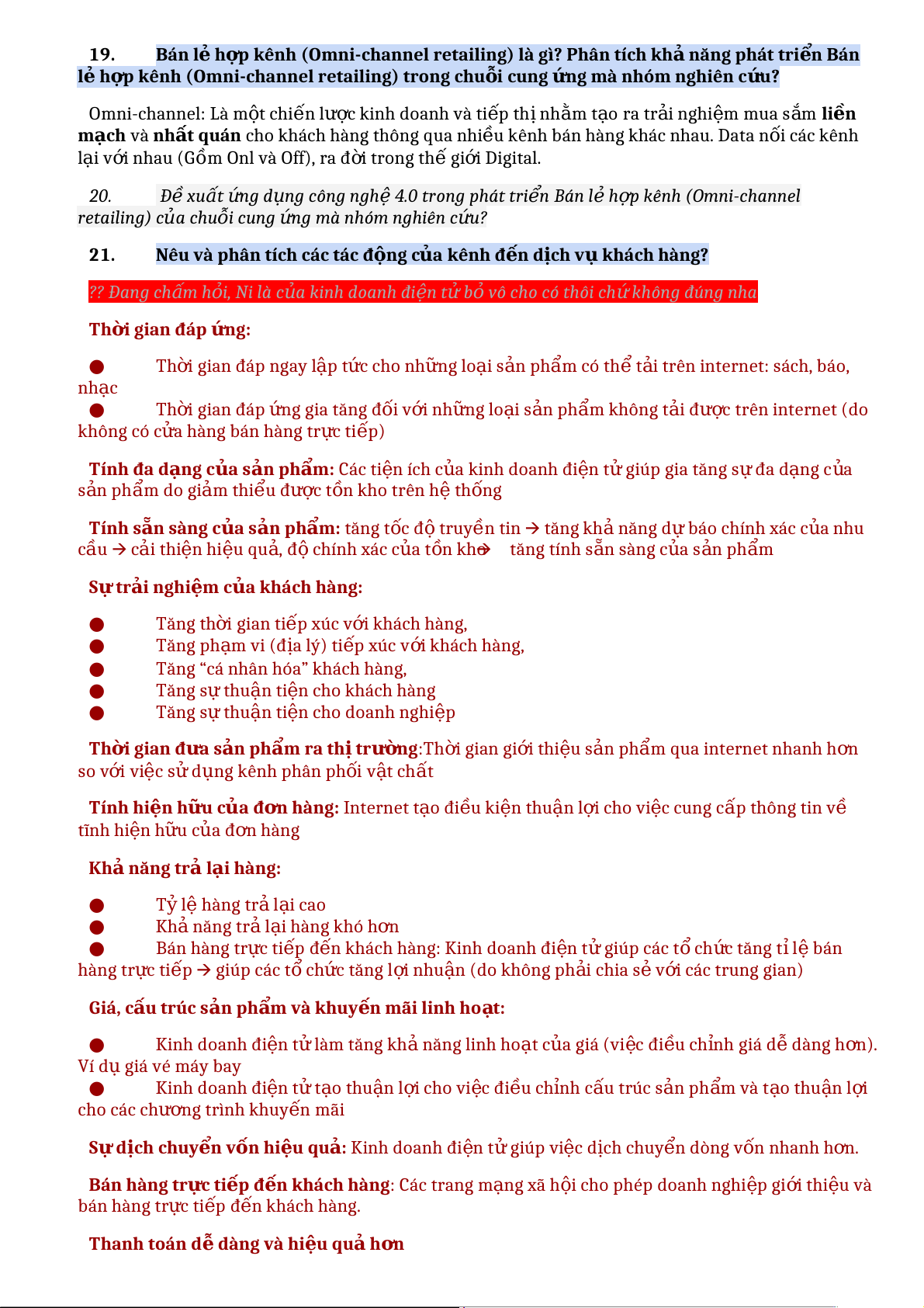 Nêu và phân tích các tác đ n ộ g c a ủ kênh đ n ế d c ị h v ụ khách hàng? ?? Đang ch m ấ h i ỏ , Ni là c a ủ kinh doanh đi n ệ t ử b