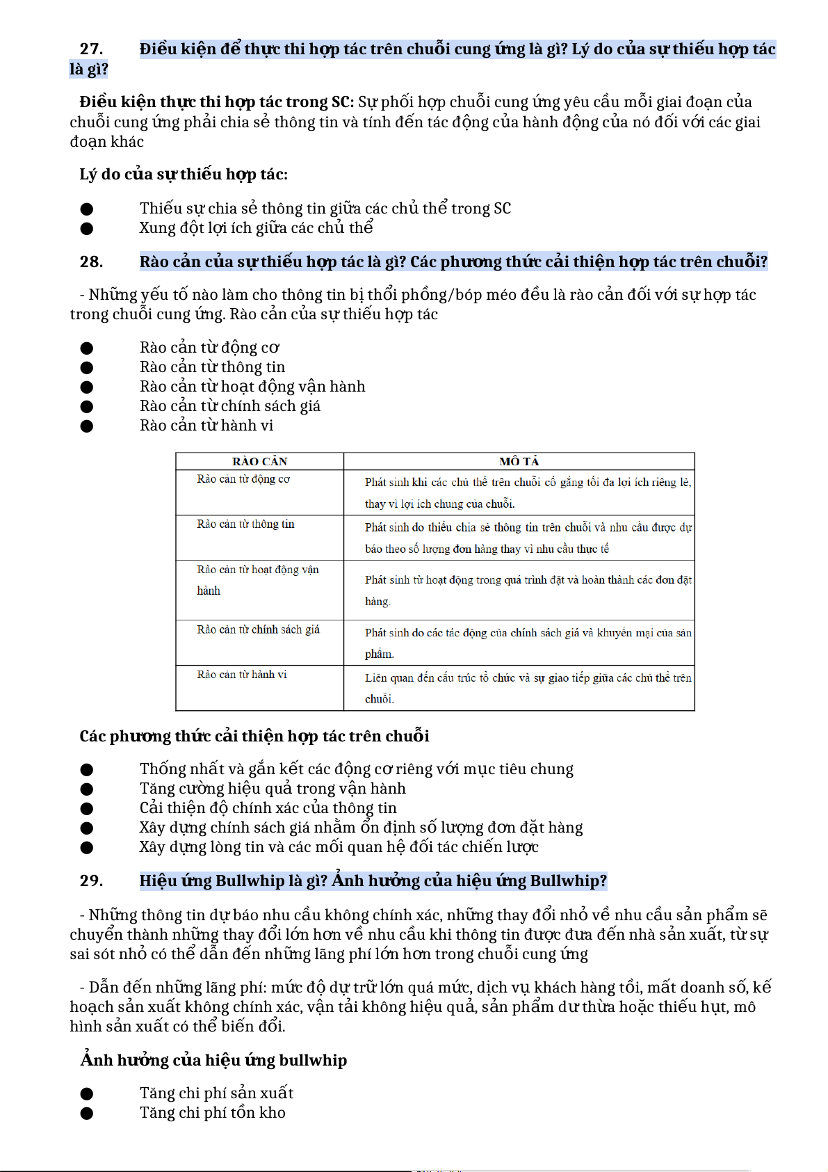 ố nào làm cho thông tin b ịth i ổ ph n ồ g/bóp méo đ u ề là rào c n ả đ i ố v i ớ s ự h p ợ tác trong chu i ỗ cung n ứ g. Rào c n ả c a ủ s ự thi u ế h p ợ tác ● Rào c n ả từ đ n ộ g cơ ● Rào c n ả t ừ thông tin ● Rào c n ả t ừ ho t ạ đ n ộ g vận hành ● Rào c n ả t ừ chính sách giá ● Rào c n ả t ừ hành vi Các ph n ươ g th c ứ c i ả thi n ệ h p ợ tác trên chuỗi ● Th n ố g nhất và gắn k t ế các đ n ộ g c ơ riêng v i ớ m c ụ tiêu chung ● Tăng c n ườ g hi u ệ quả trong v n ậ hành ● C i
