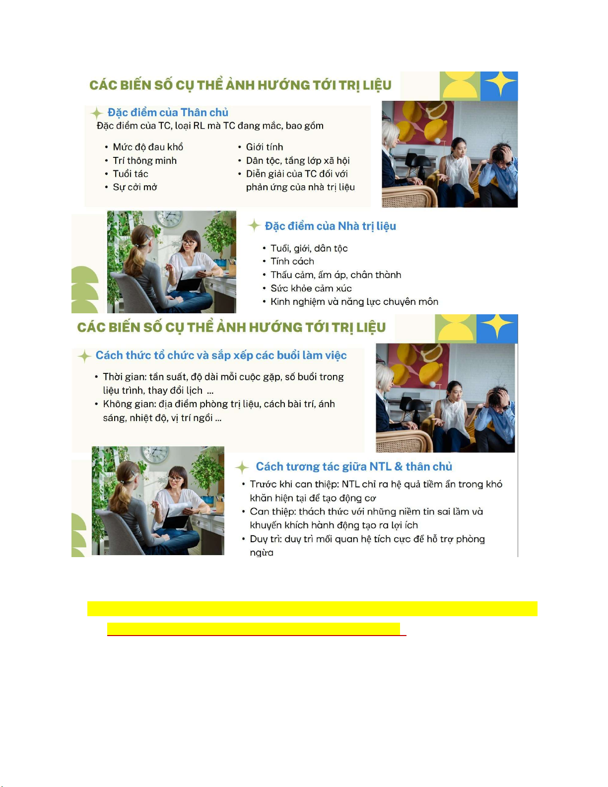 + Nhà trị liệu phải gạt bỏ mọi quan niệm tiêu cực cố hữu về TC.
