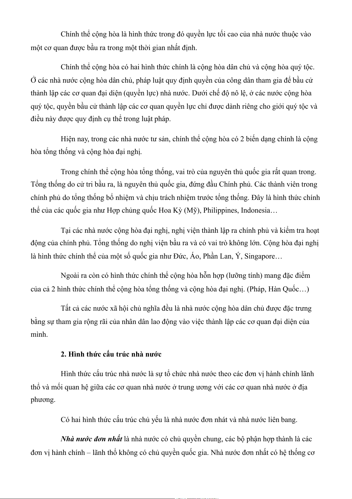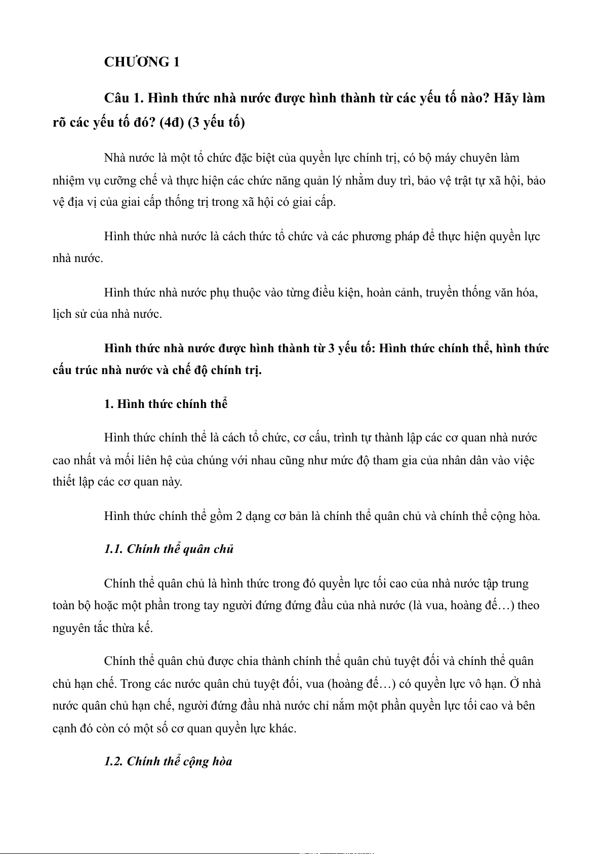 Câu 1. Hình thức nhà nước được hình thành từ các yếu tố nào? Hãy làm