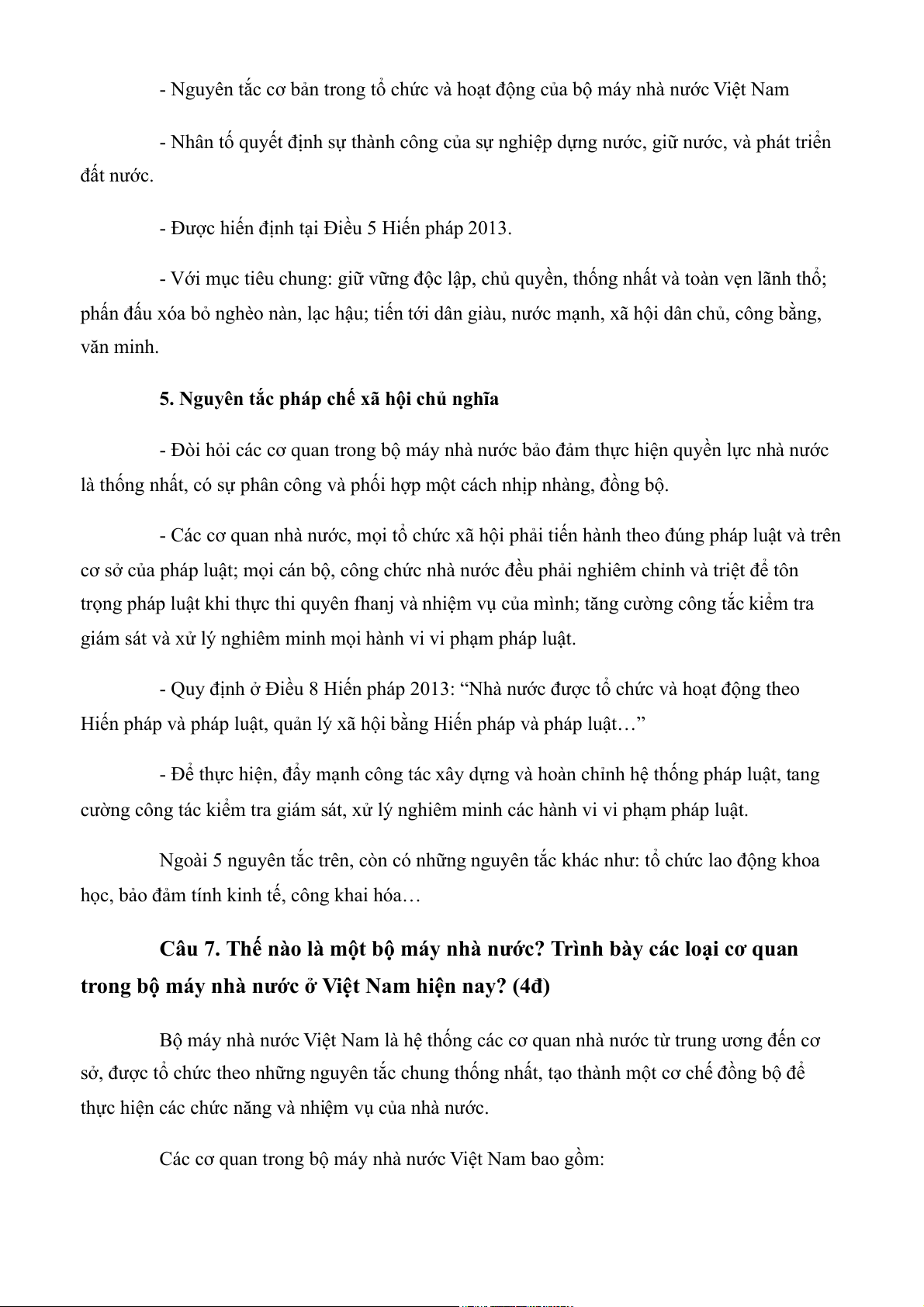 Câu 7. Thế nào là một bộ máy nhà nước? Trình bày các loại cơ quan