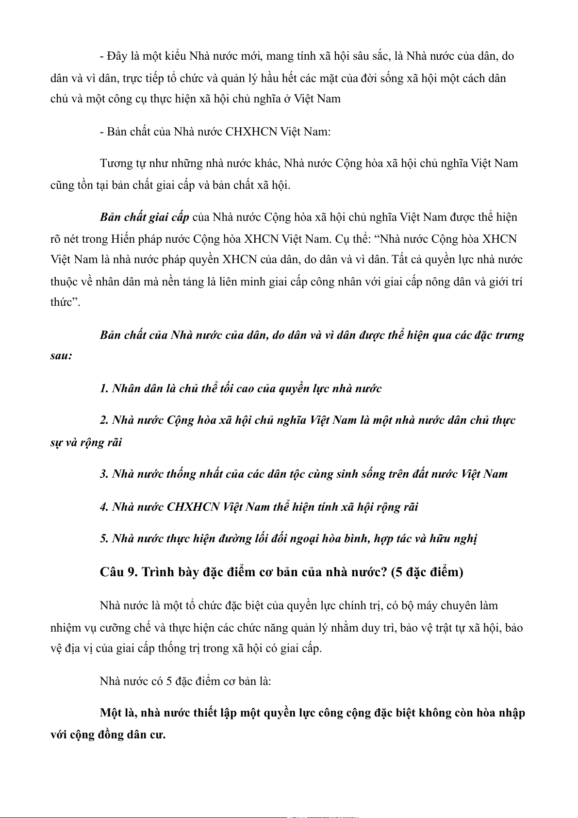Câu 9. Trình bày đặc điểm cơ bản của nhà nước? (5 đặc điểm)