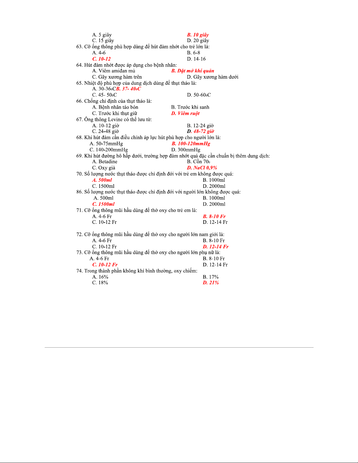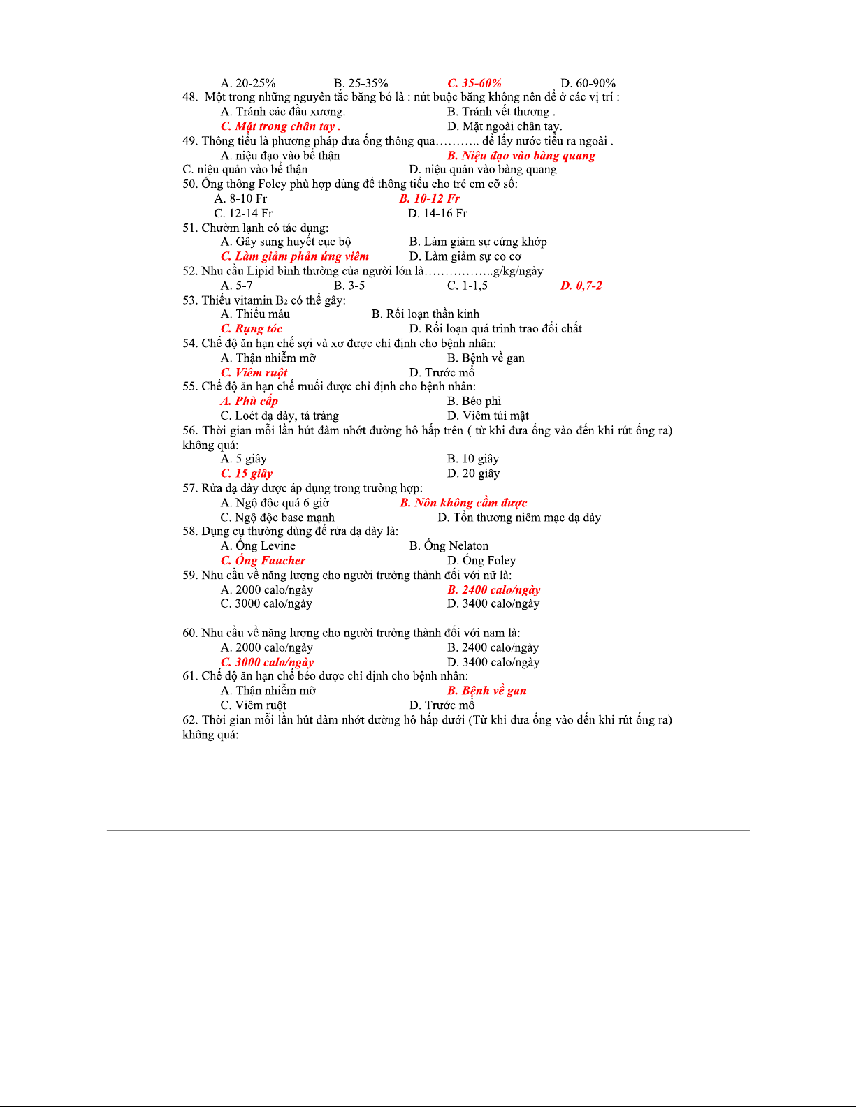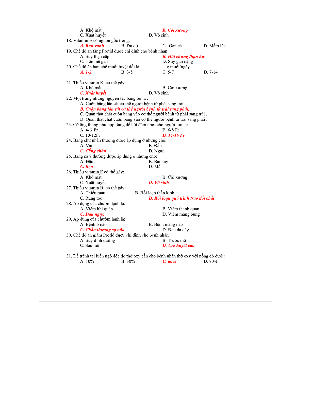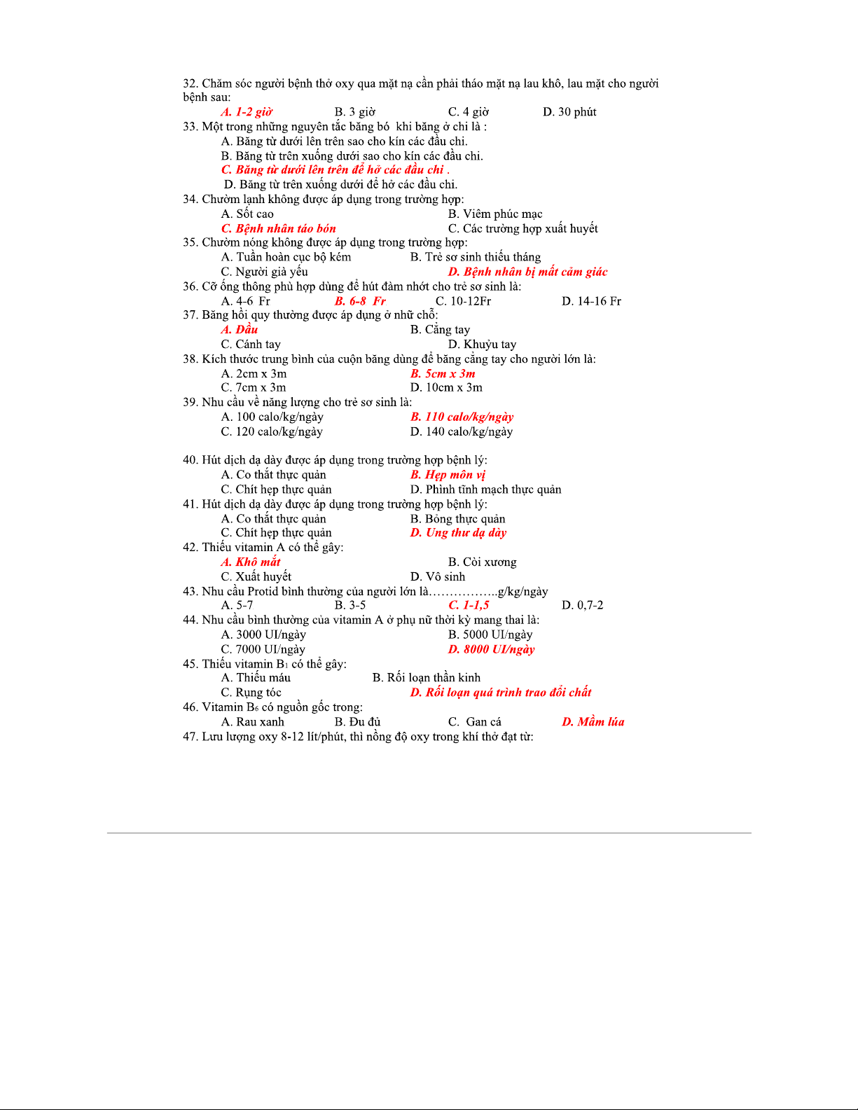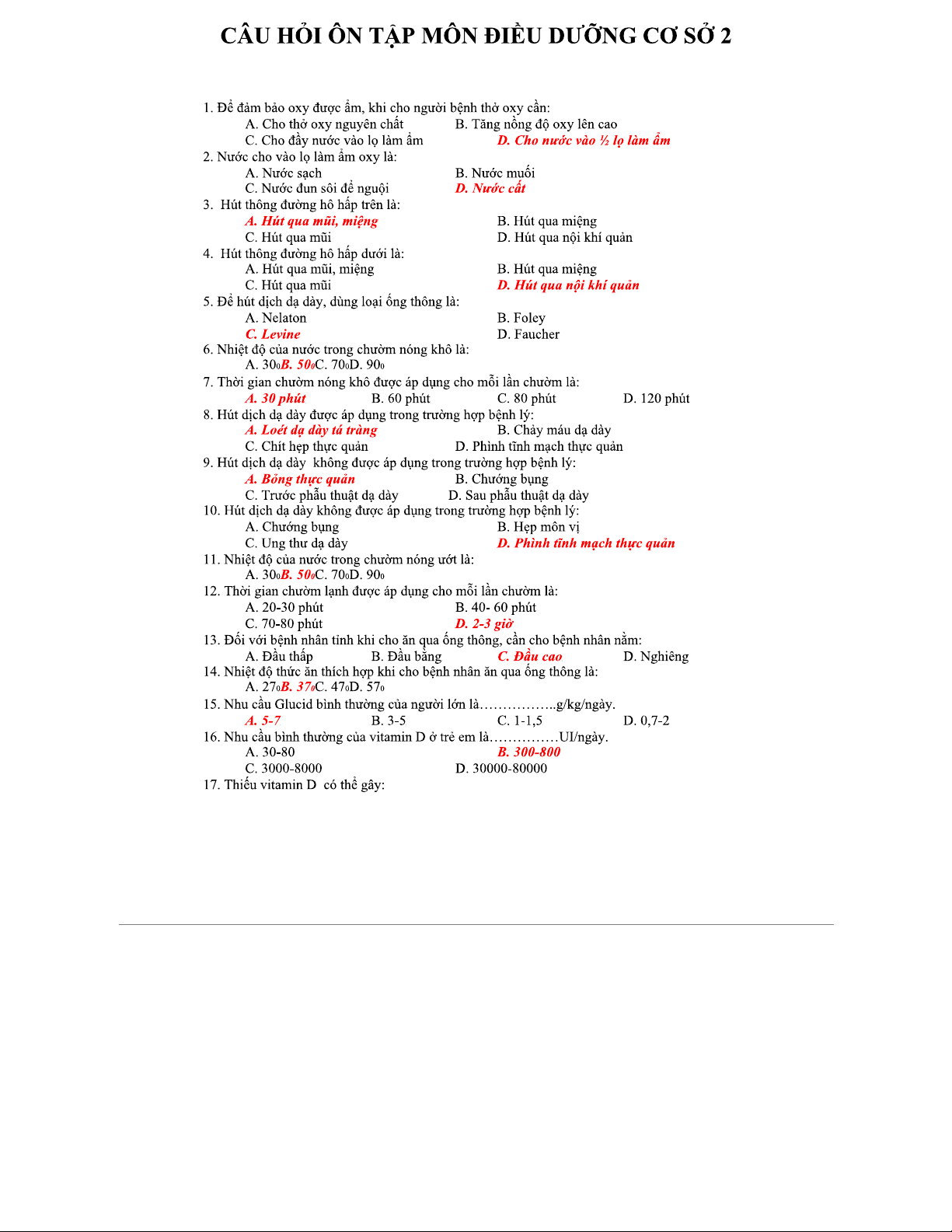CÂU HỎI ÔN TẬP ĐIỀU DƯỠNG CƠ SỞ 2 - TÀI LIỆU THAM KHẢO
