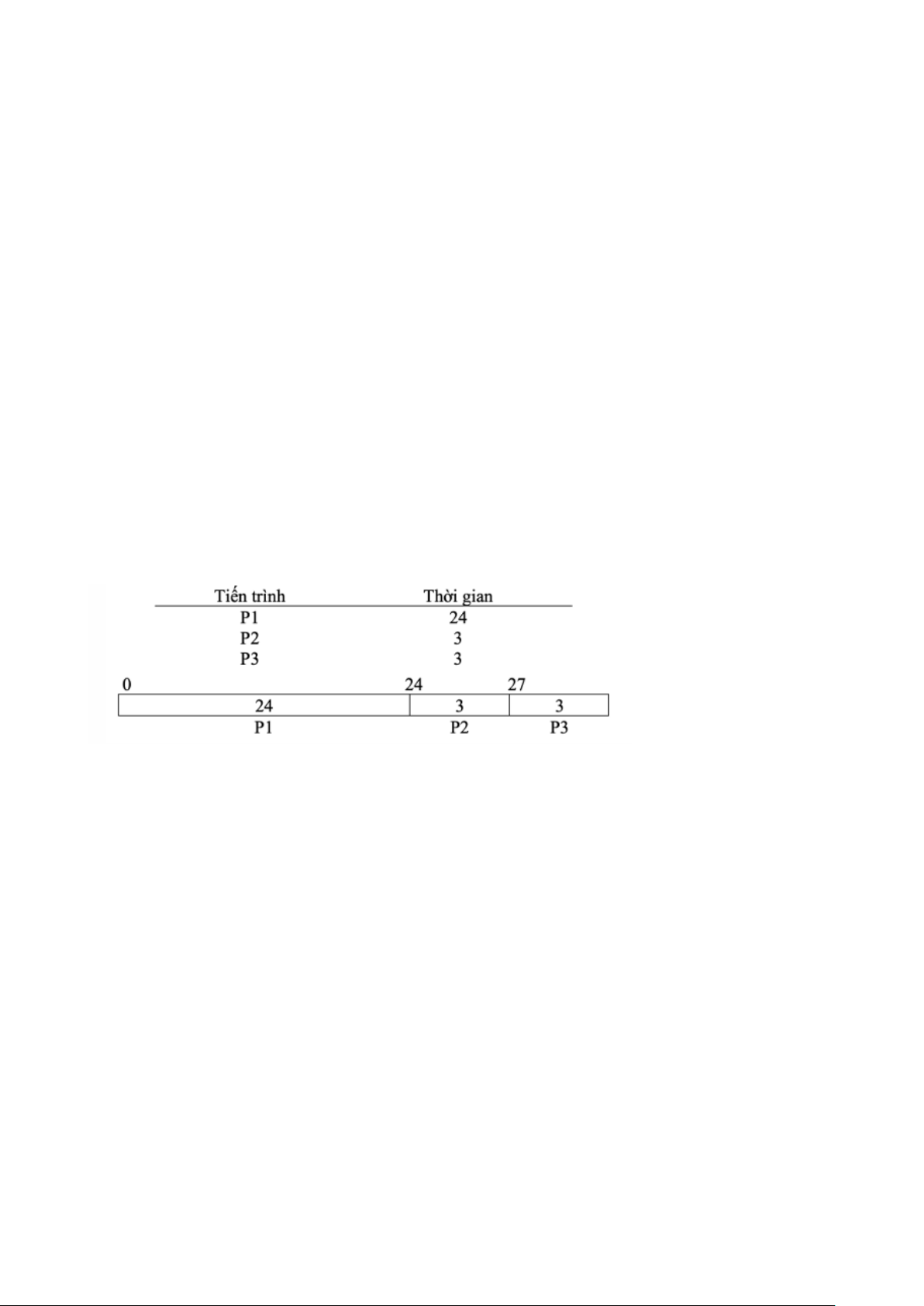 => cải thiện thời gian đáp ứng so với FCFS, thời gian chờ đợi trung bình vẫn dài Ví dụ: