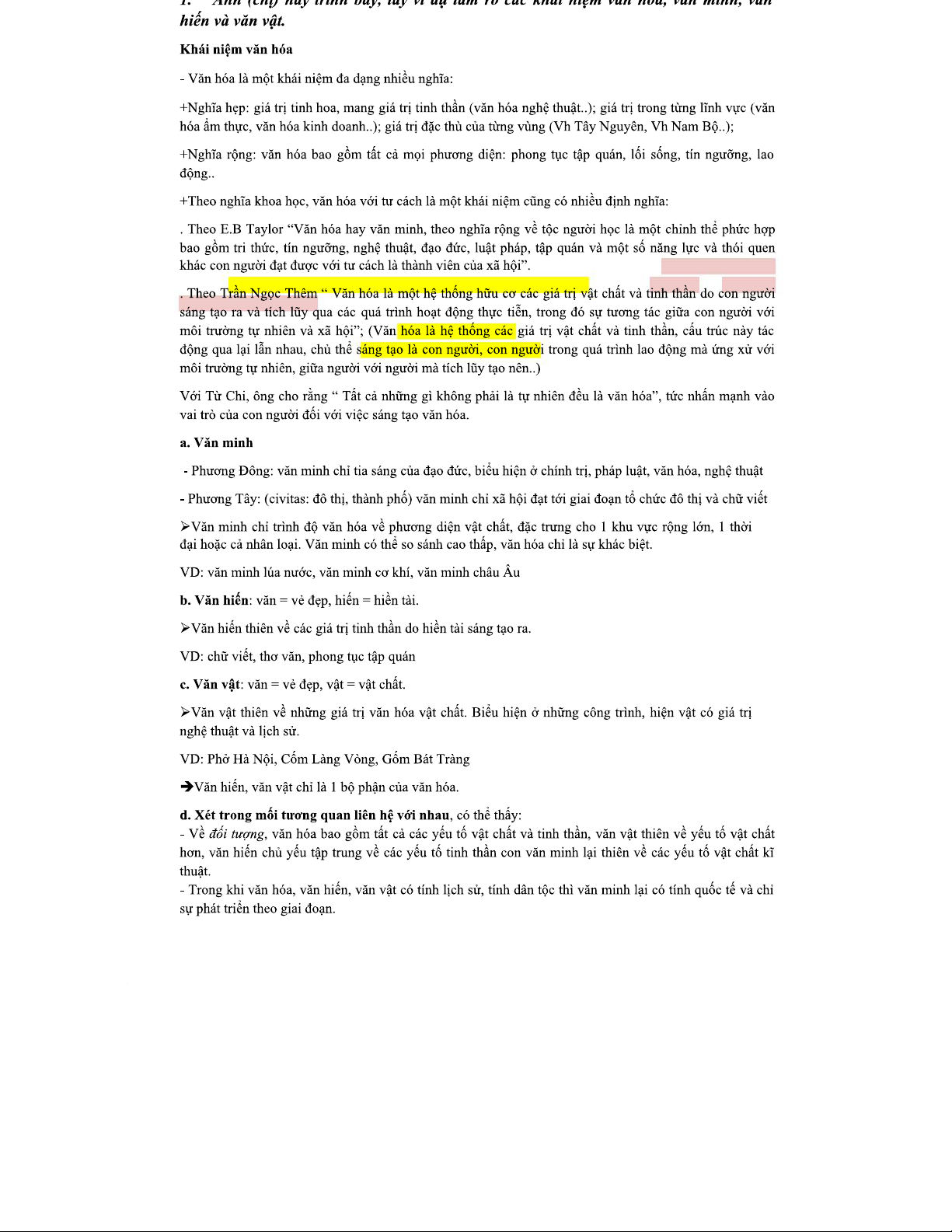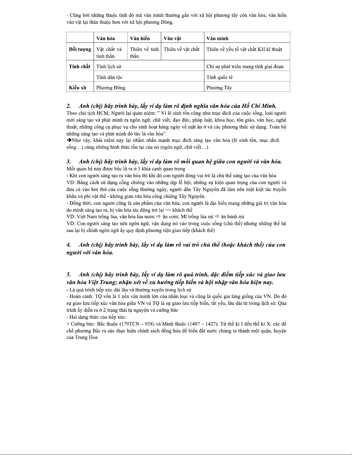 Câu hỏi ôn tập - Khái niệm Văn hóa, Văn minh, Văn hiến, Văn vật