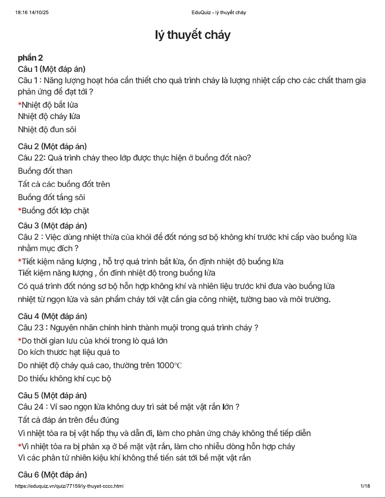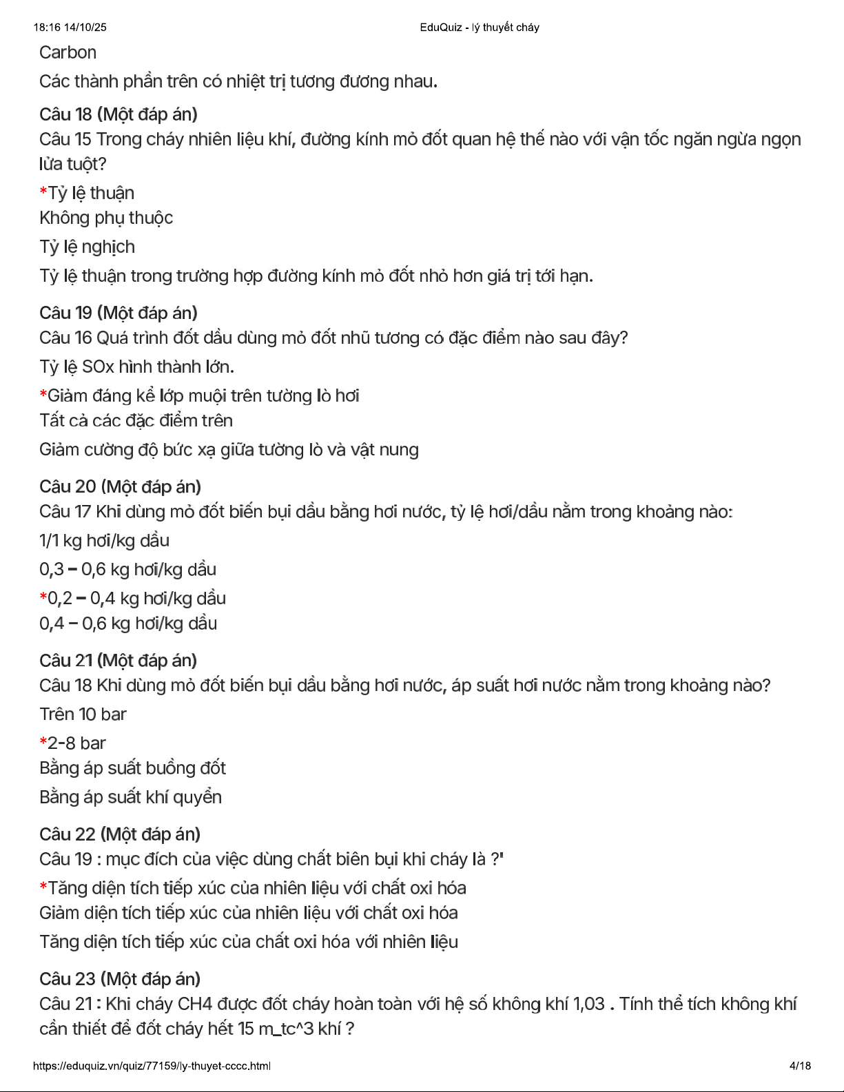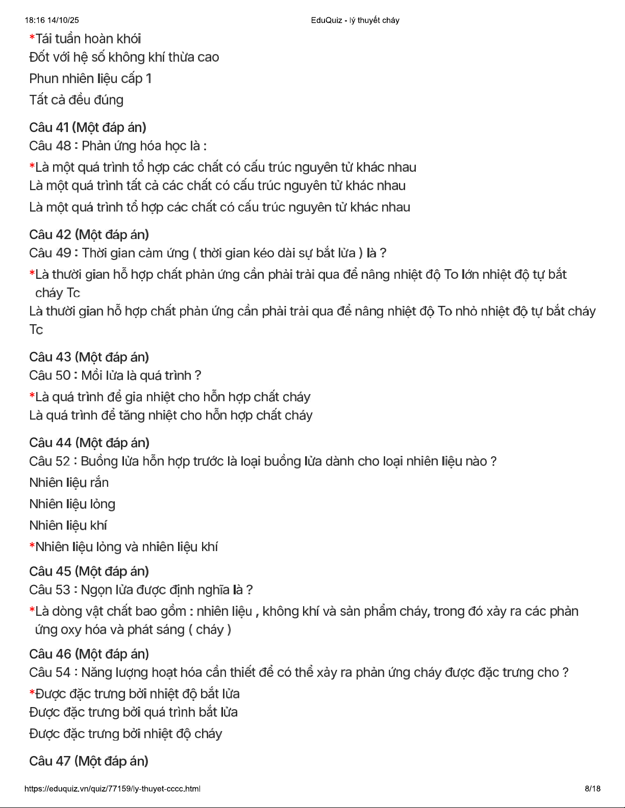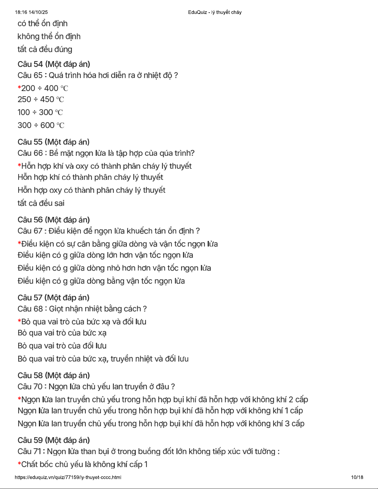 Câu hỏi ôn tập Lý thuyết cháy | Đại học Bách Khoa Hà Nội