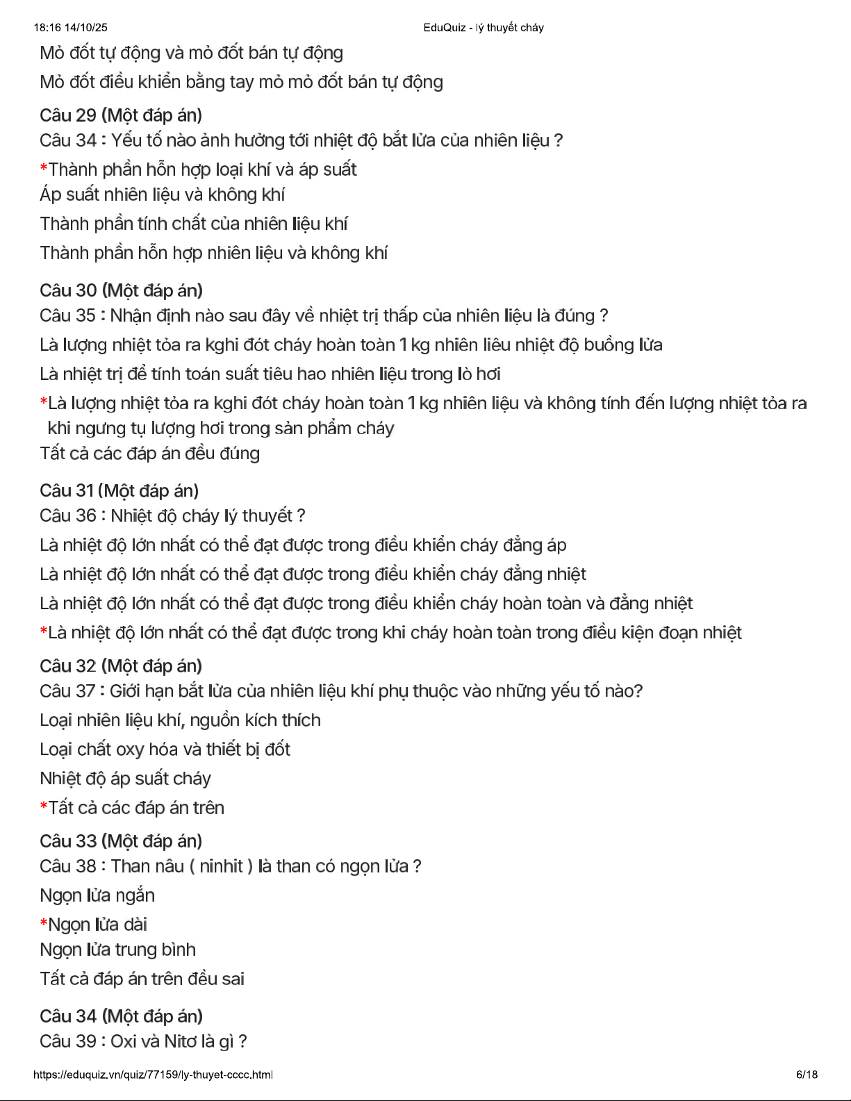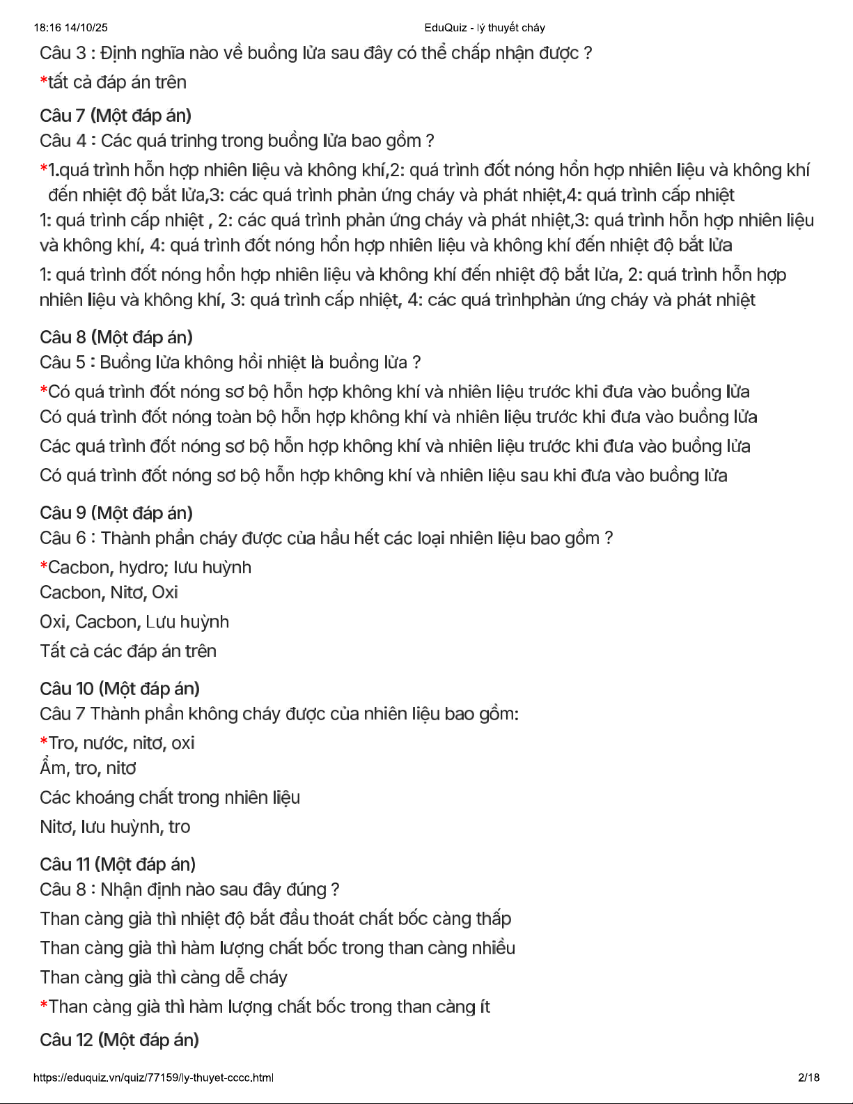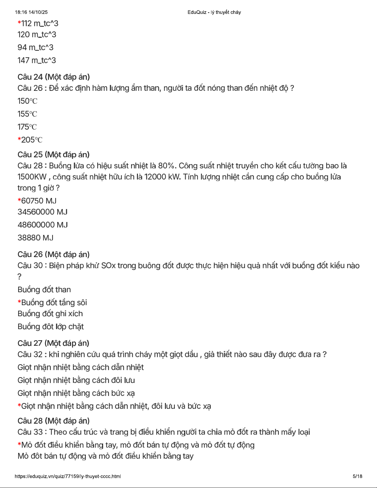 Câu hỏi ôn tập Lý thuyết cháy | Đại học Bách Khoa Hà Nội