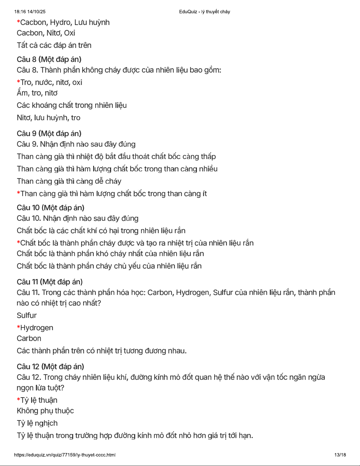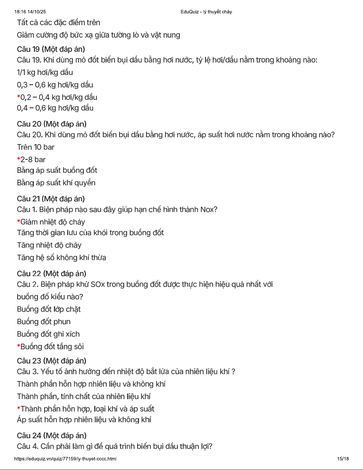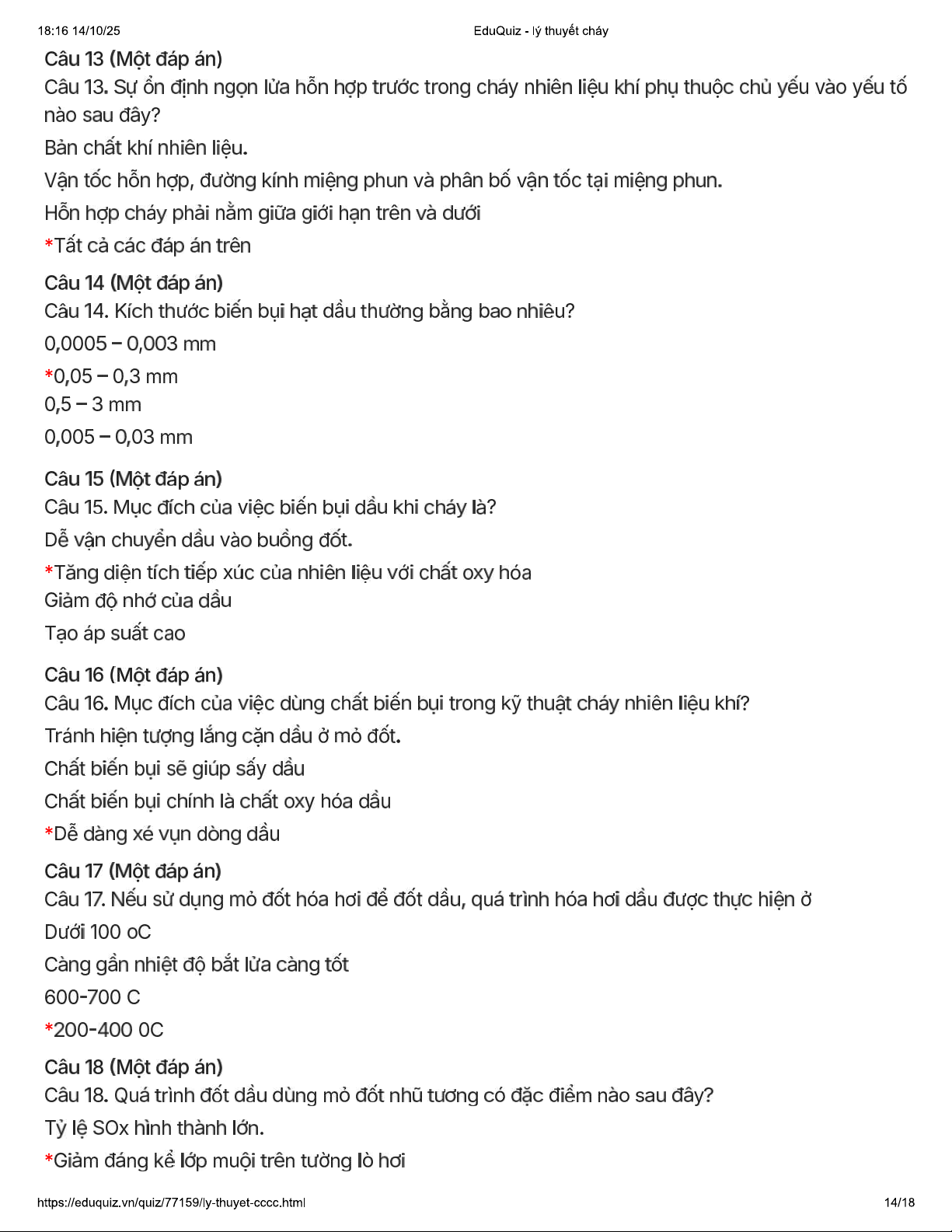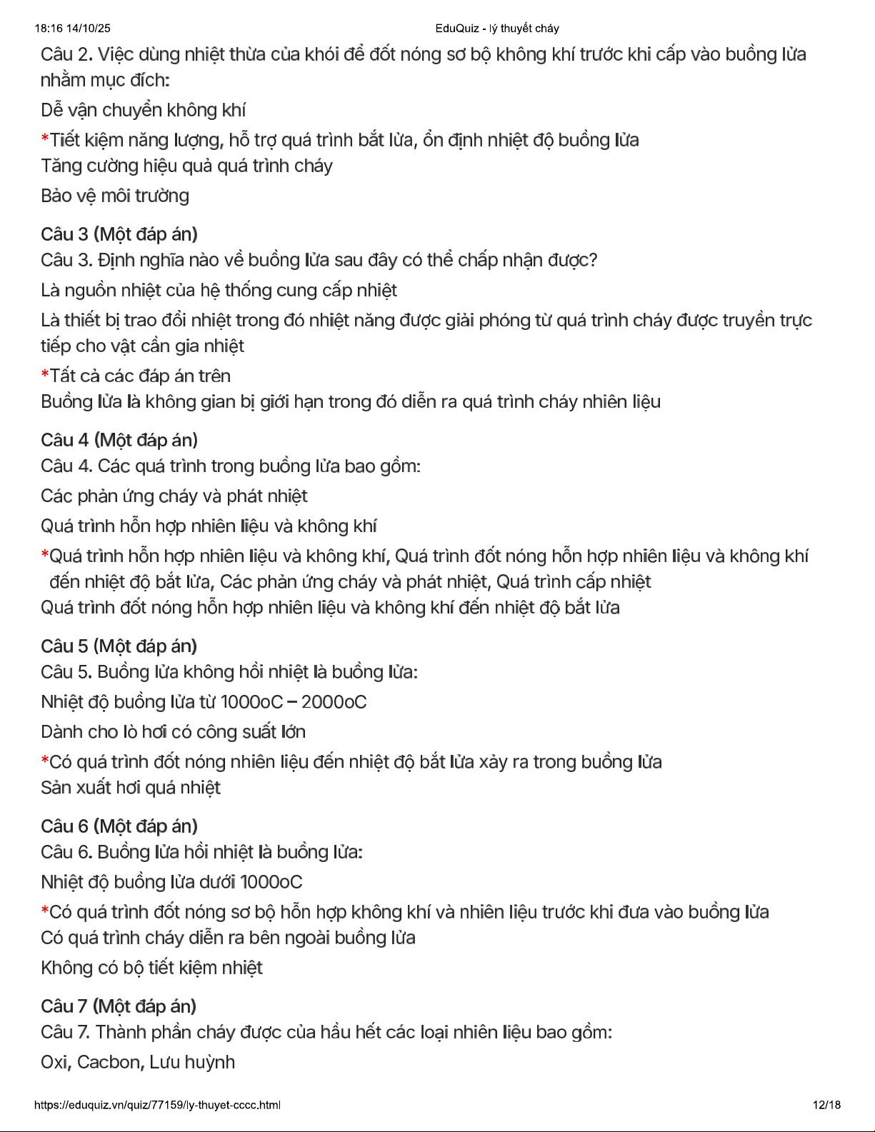 Câu hỏi ôn tập Lý thuyết cháy | Đại học Bách Khoa Hà Nội