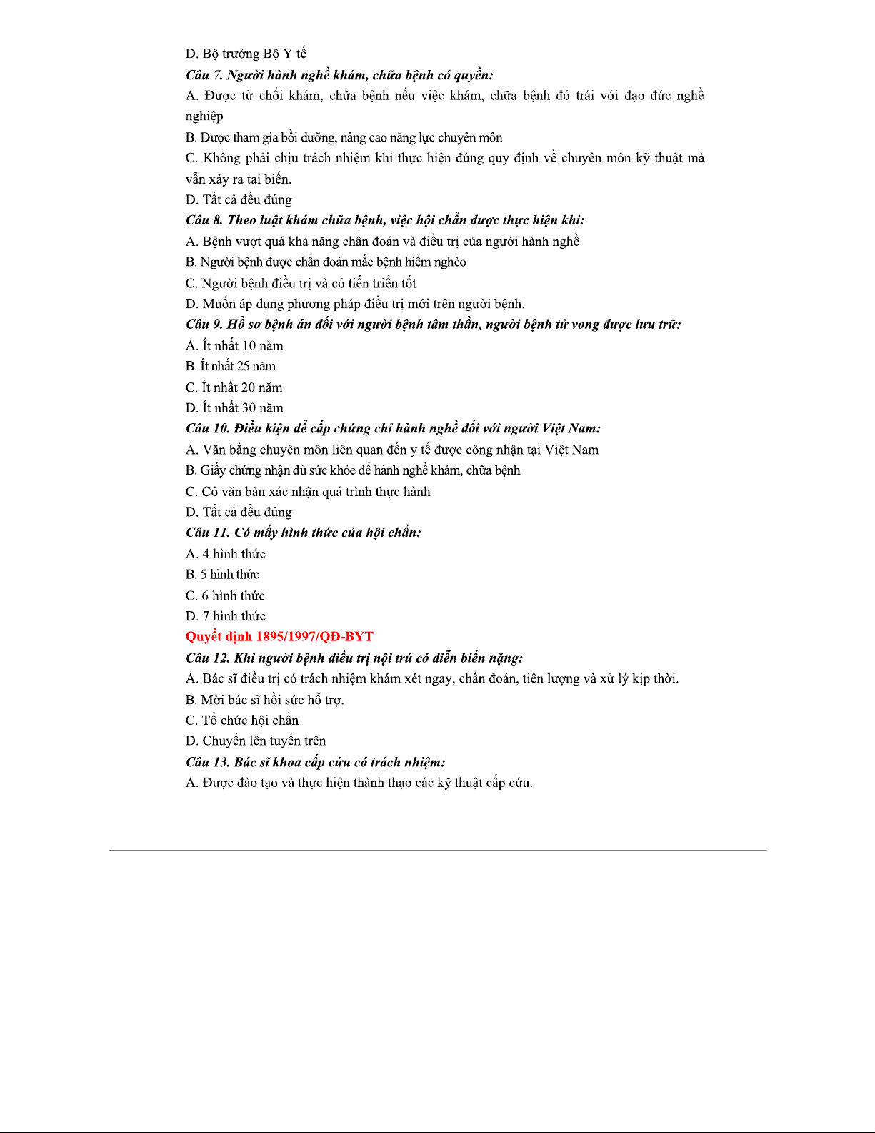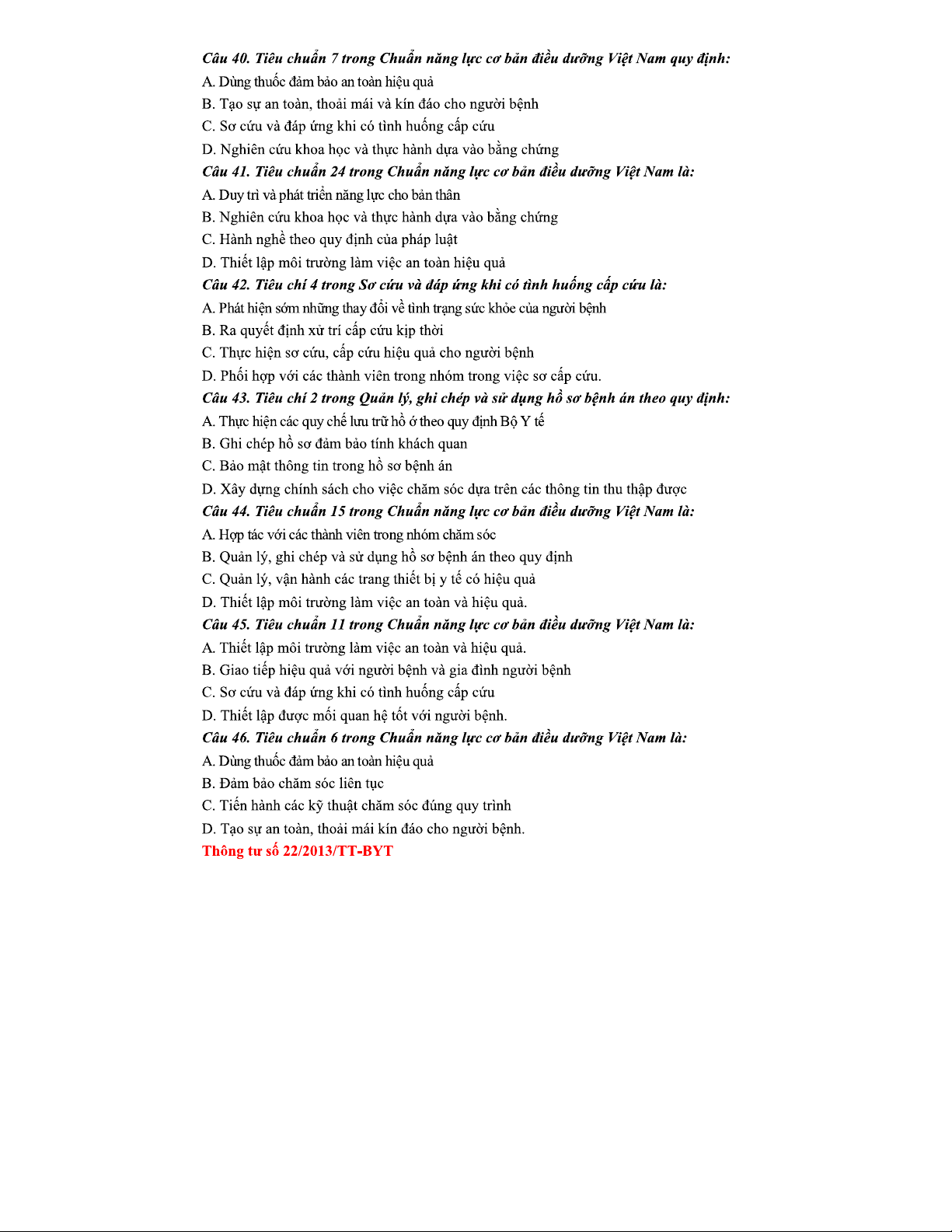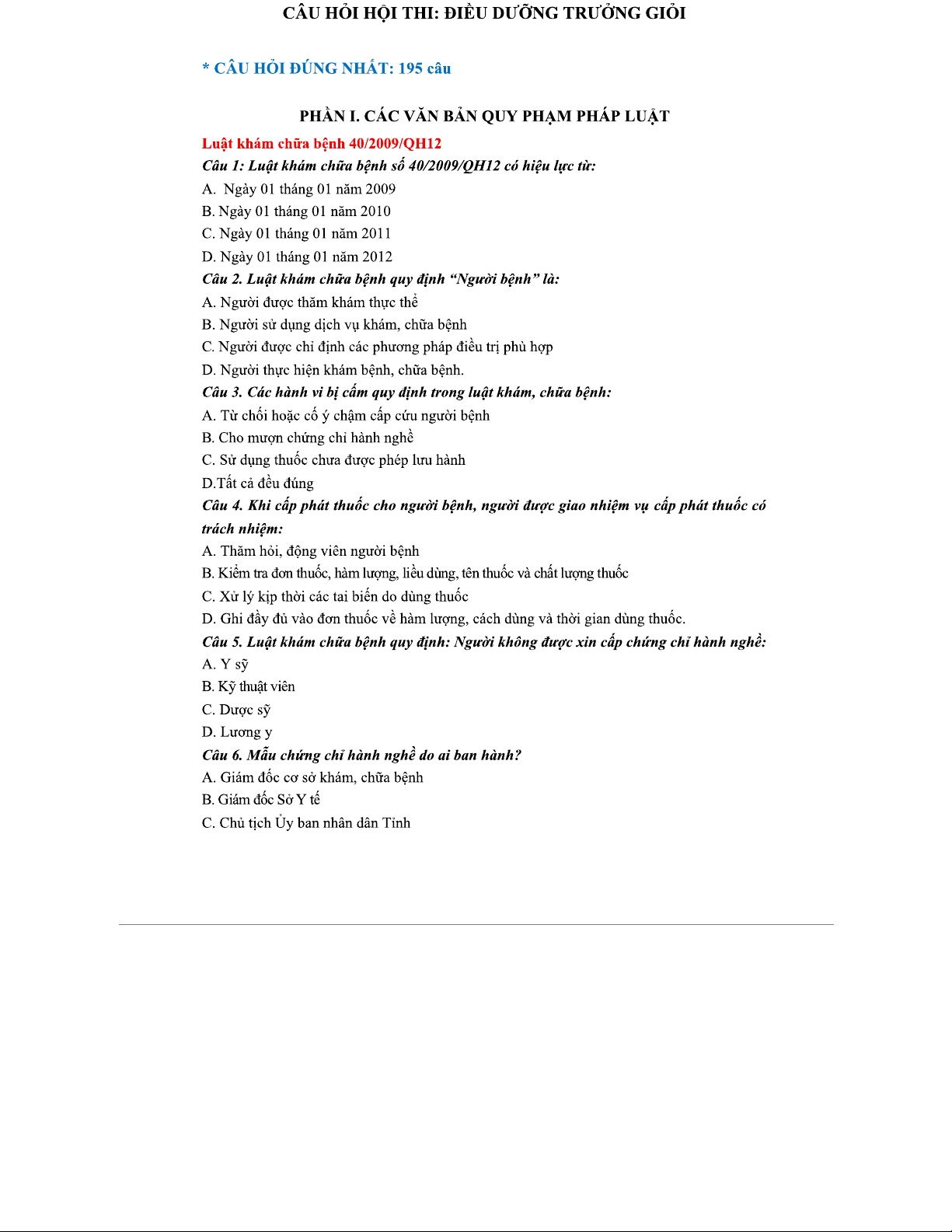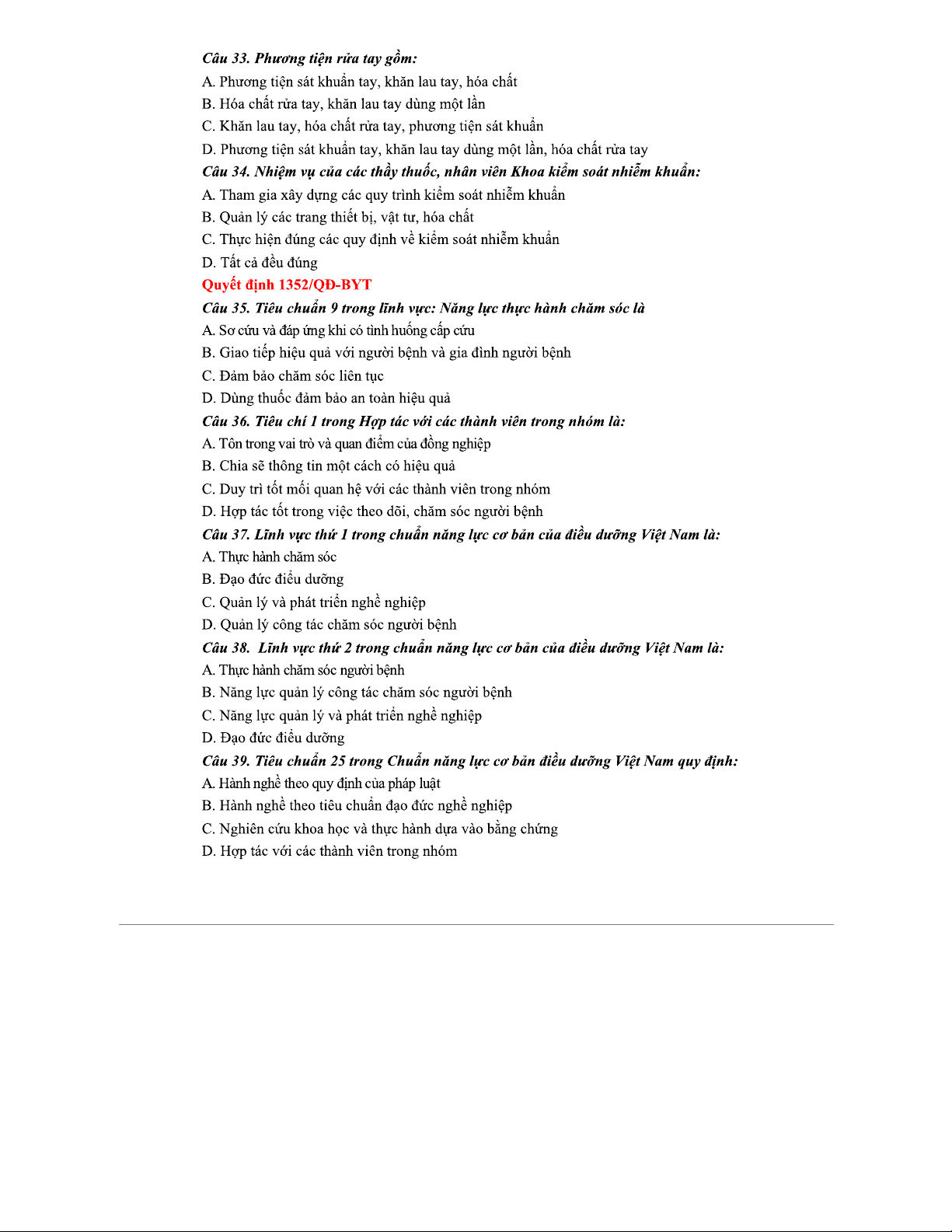 Câu hỏi ôn tập lý thuyết - Hội thi Điều dưỡng trưởng giỏi