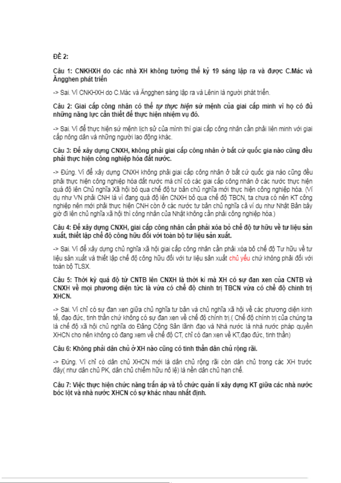 CÂU HỎI CHỦ NGHĨA XÃ HỘI