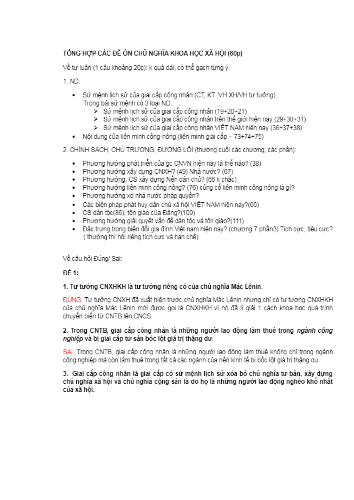 1 Tư tưởng của chủ nghĩa khoa học xã hội là tư tưởng riêng của chủ nghĩa Mac-Lê Nin