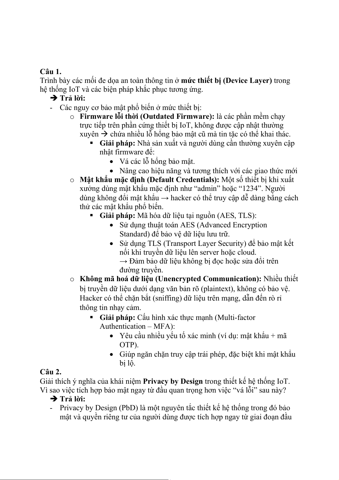 hệ thống IoT và các biện pháp khắc phục tương ứng. ➔ Trả lời: