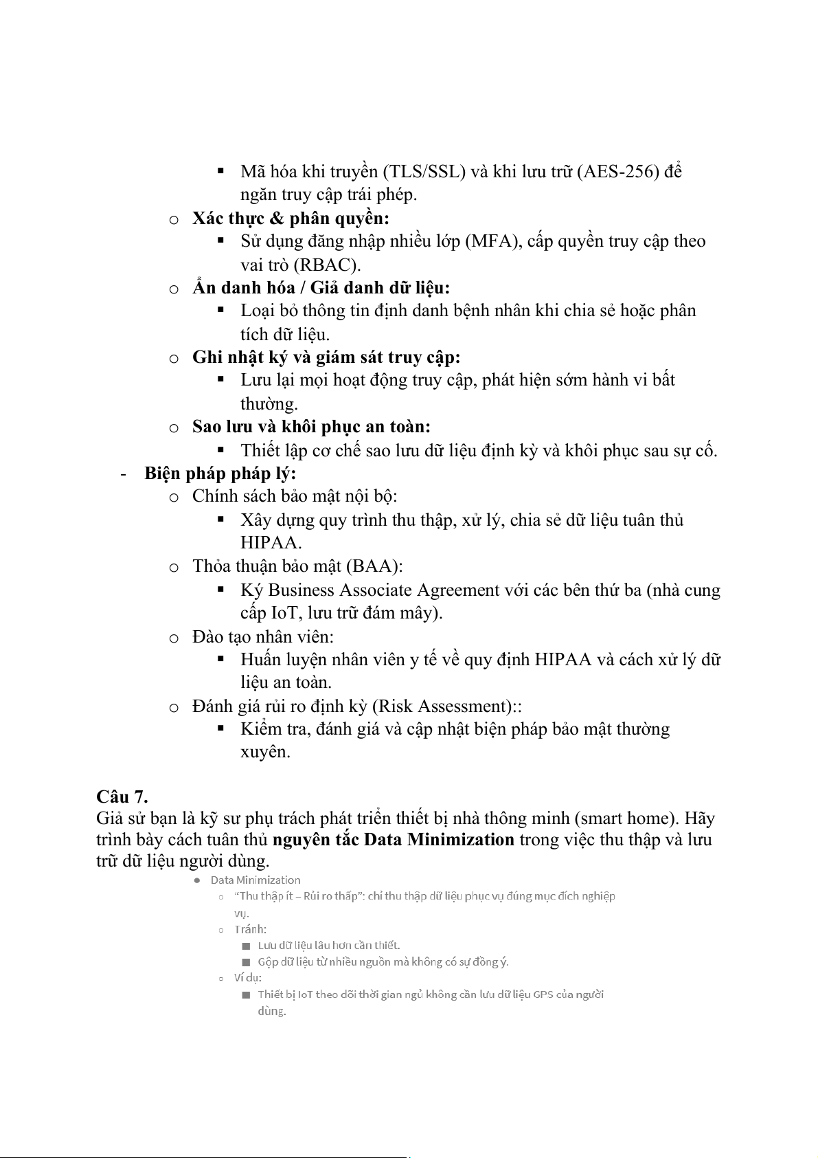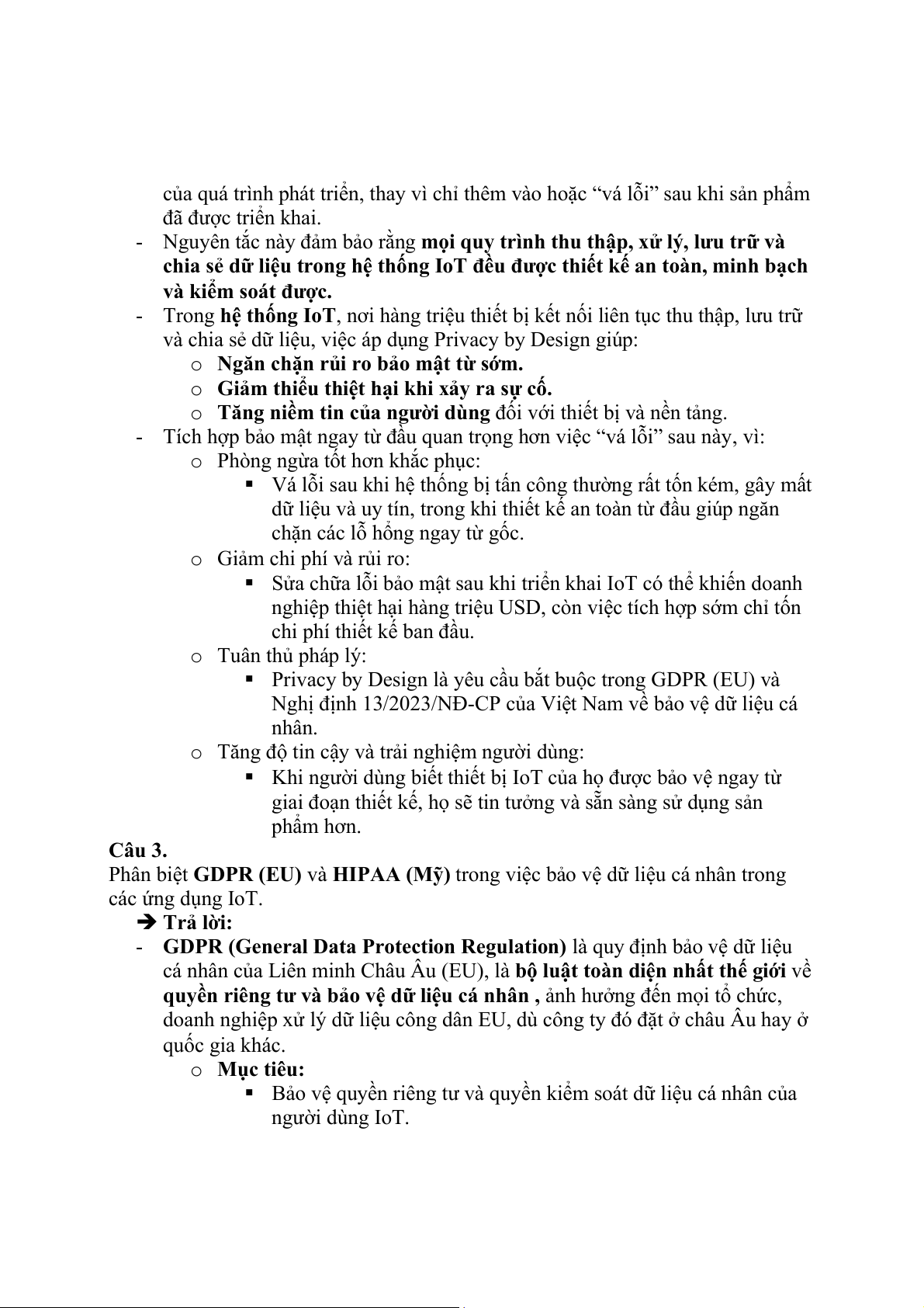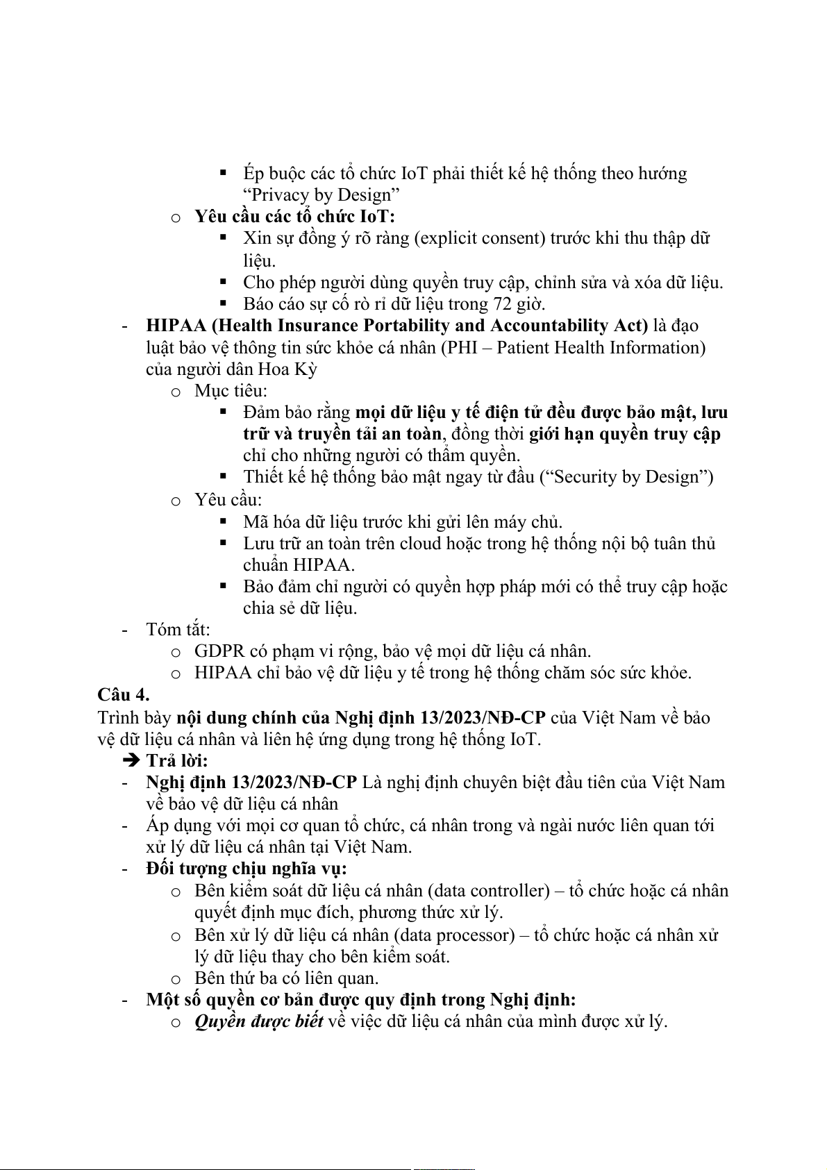 vệ dữ liệu cá nhân và liên hệ ứng dụng trong hệ thống IoT. ➔ Trả lời: