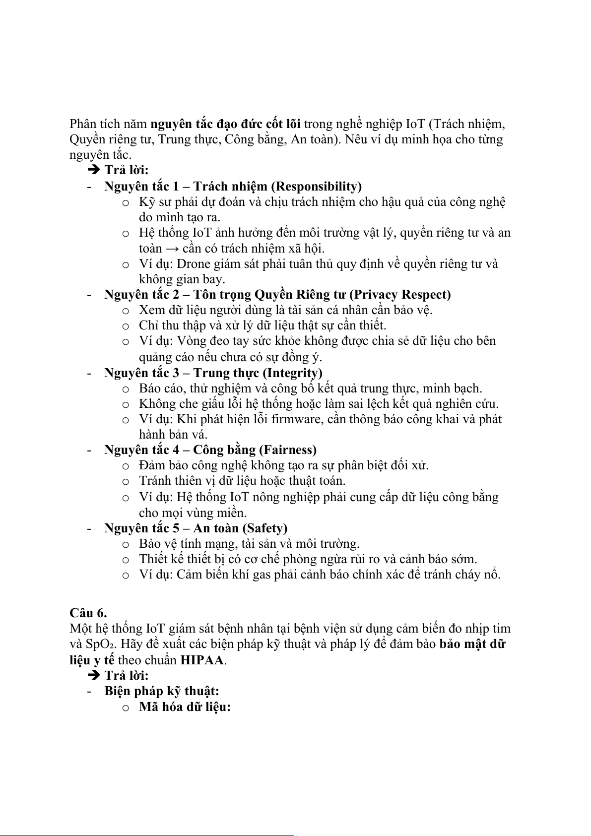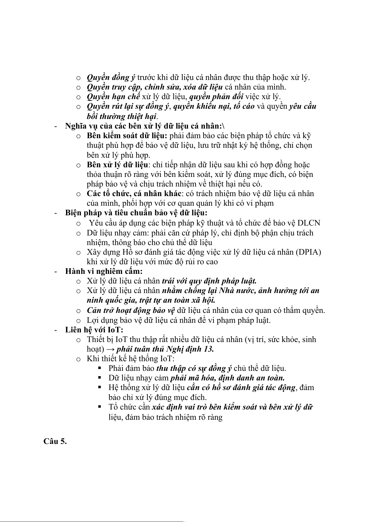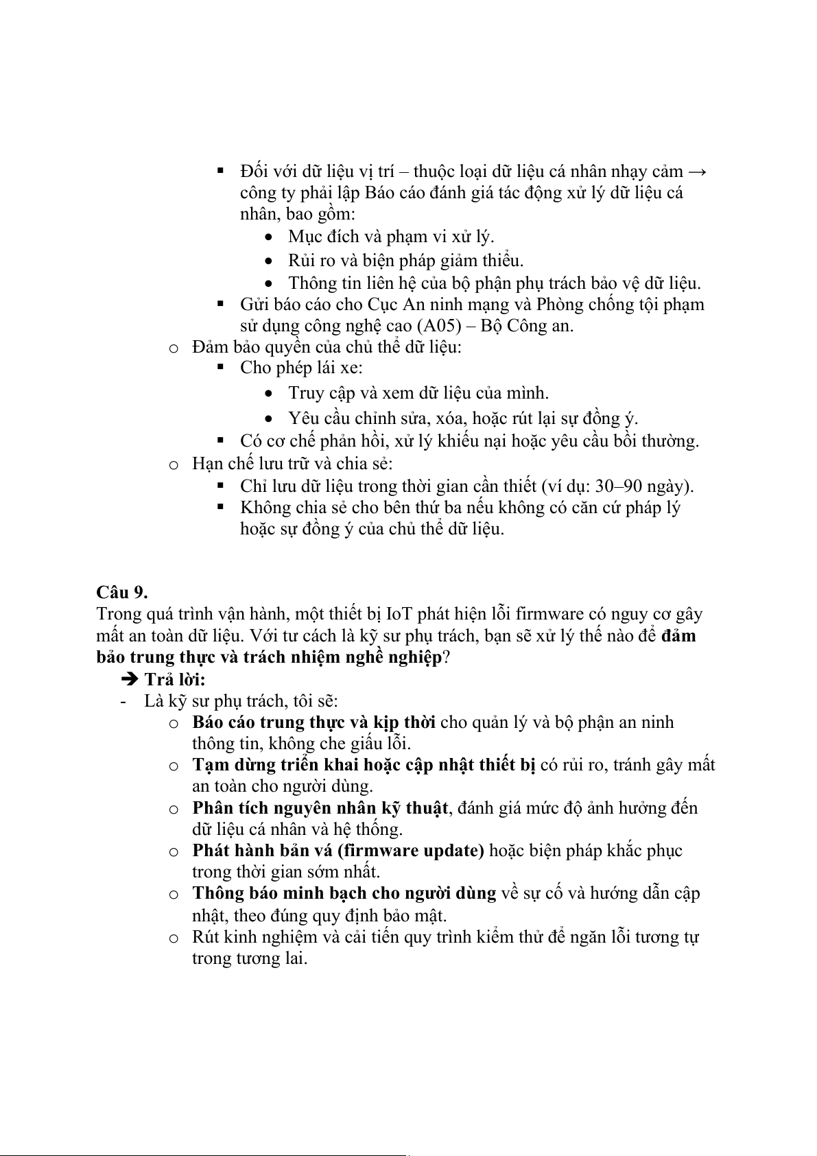 vệ dữ liệu cá nhân và liên hệ ứng dụng trong hệ thống IoT. ➔ Trả lời:
